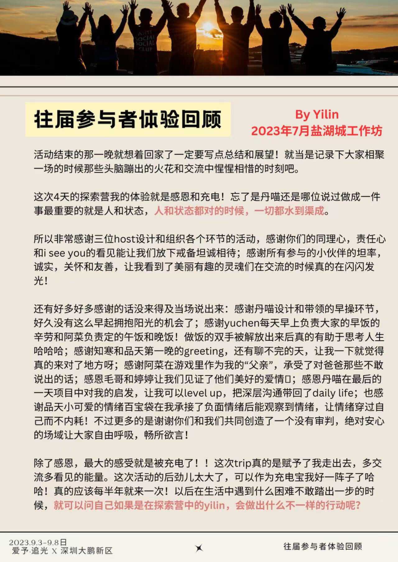 【2023.9.3 - 9.8 新一期深圳线下沉浸式向内探索开始报名啦】
