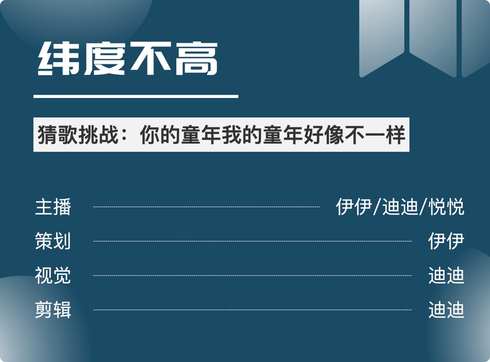 这一期我们各自拿出自己的宝藏歌单,做一个猜歌挑战,看看是哪些歌曲,陪伴了生长在不同地区、环境和家庭的我们;谁才是那个曲库最大公约数。