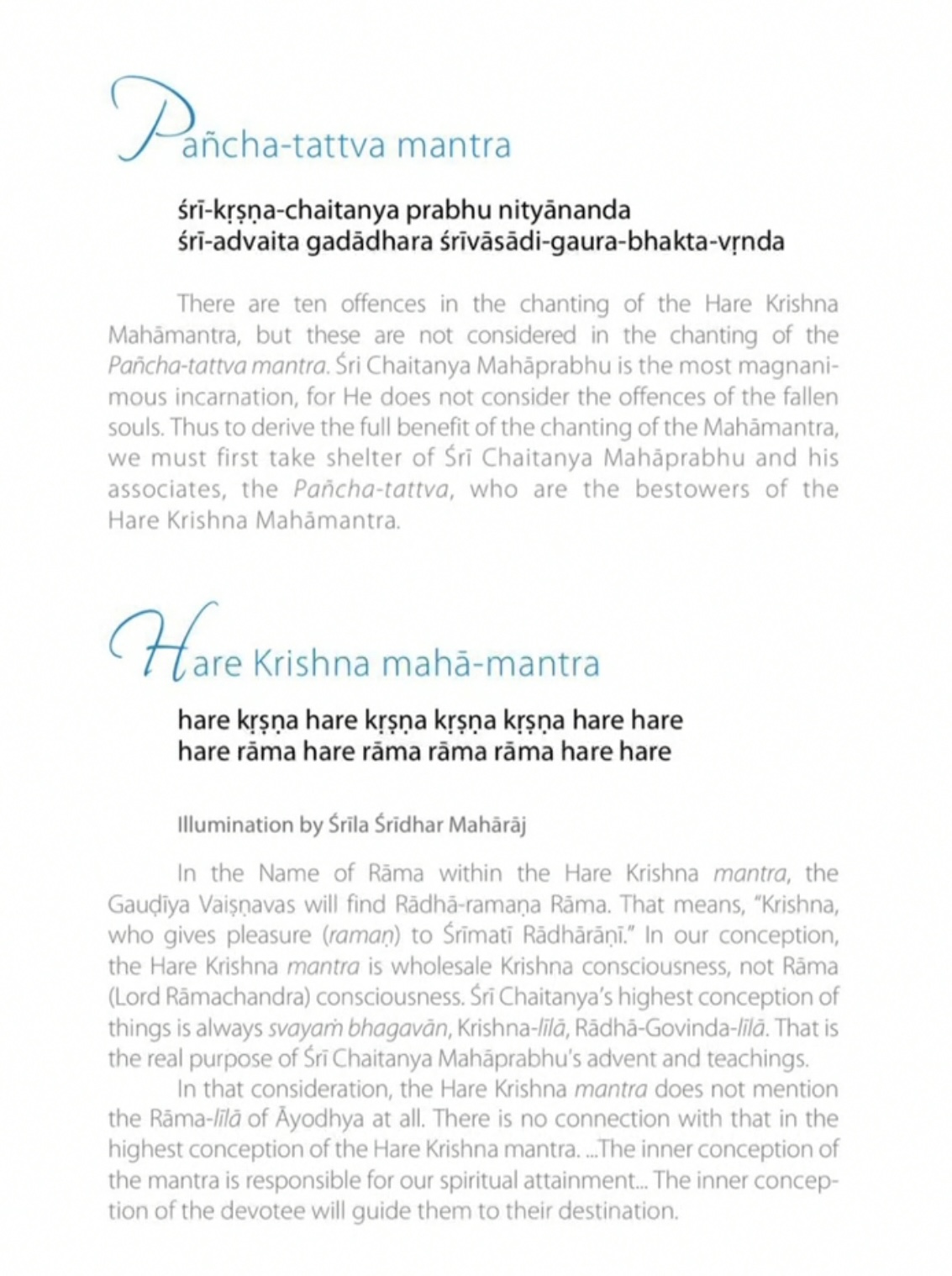 被称为“伟大”咒语,只有四行,由神灵的名字及其能量组成:Hare、Krishna和Rama.