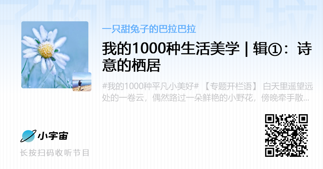 今天是平平又无奇的一天,却也有着它的可爱之处,一起来聆听本期节目——《平淡生活的惊喜》!
