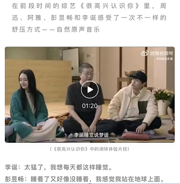 在综艺《很高兴认识你》中,周迅、李诞、阿雅、彭昱畅、李诞等明星感受了一次不一样的舒压方式 —— 自然原生音乐疗愈,带火了颂钵。时下,颂钵疗愈已经成为前卫、潮流的放松方式。颂钵疗愈是声音疗愈的一种,声音疗愈是利用“共振” 原理,借助外在创造的声音(人声、乐器与自然声音)投射到紧张或生病的部位,改变身体不和谐的频率,让它重新回到正常而健康的振动上。当大脑无法放松下来的时候,可以试着用颂钵的音声,清空一切烦恼思绪,让心安静下来。为什么呢?我们知道人体的 70% 是由水组成的。当颂钵的声音与震动作用于人体的时候,颂钵的频率就会经由水的共振(这里的水是指我们身体中的液体,如血液等),传达到人的身体上,产生一种规律性的震动,会深入到我们的内在器官、细胞、筋膜,近乎达到种深层次的体内按摩,这个时候紧绷的身体会慢慢放松下来,从而起到调节和舒缓机能的作用。可能你听说过、也和我们一样好奇,那这期节目绝对适合你!