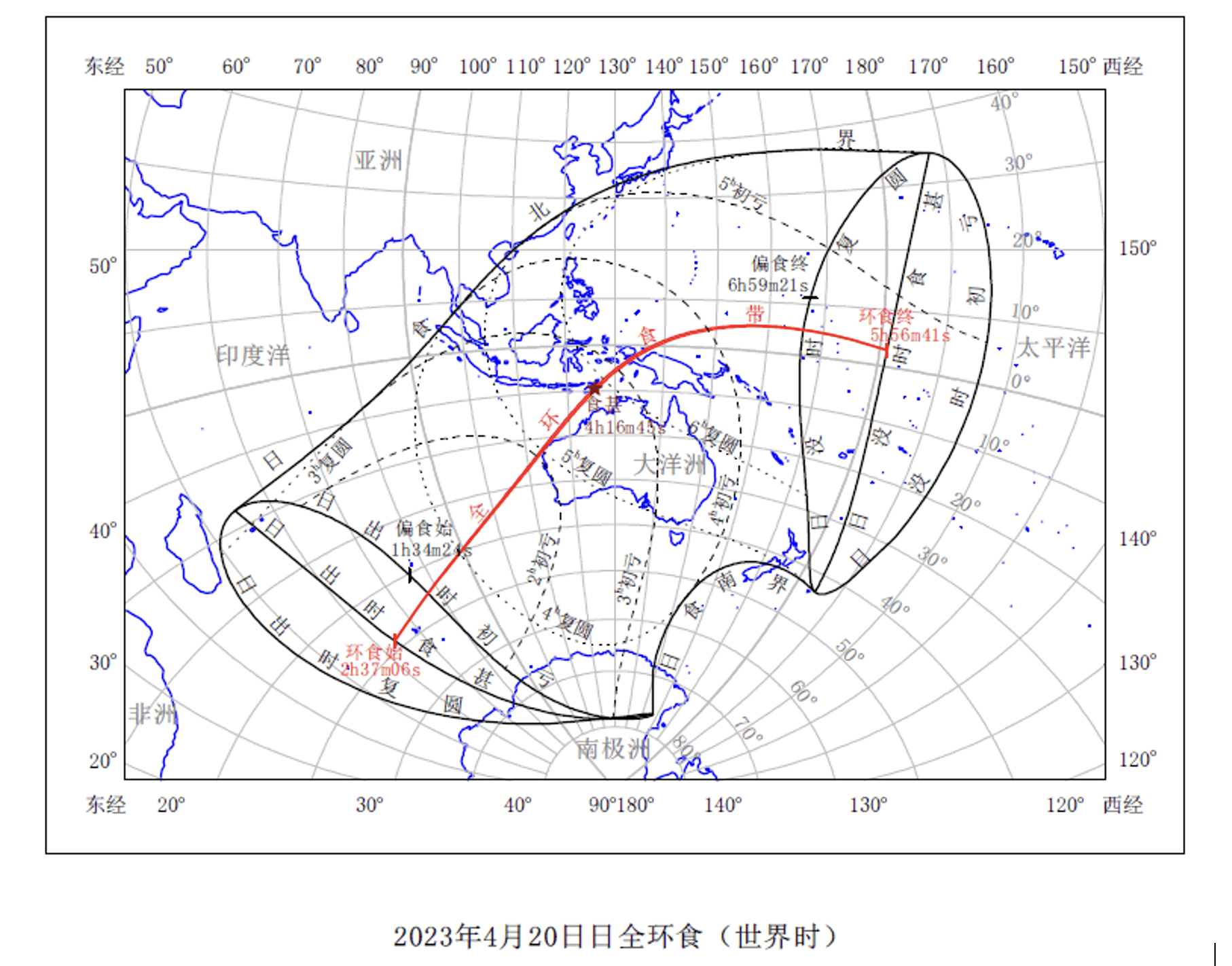 2023年4月20日,一场日食悄然而至。值得一提的是,这次日食是一次罕见的“混合食”——在能看到日食的区域里,有的地方看到的是日全食,有的地方看到的则是日环食。这次日食的全(环)食带从印度洋开始,穿过澳大利亚西北部一角,又从东南亚进入太平洋。
