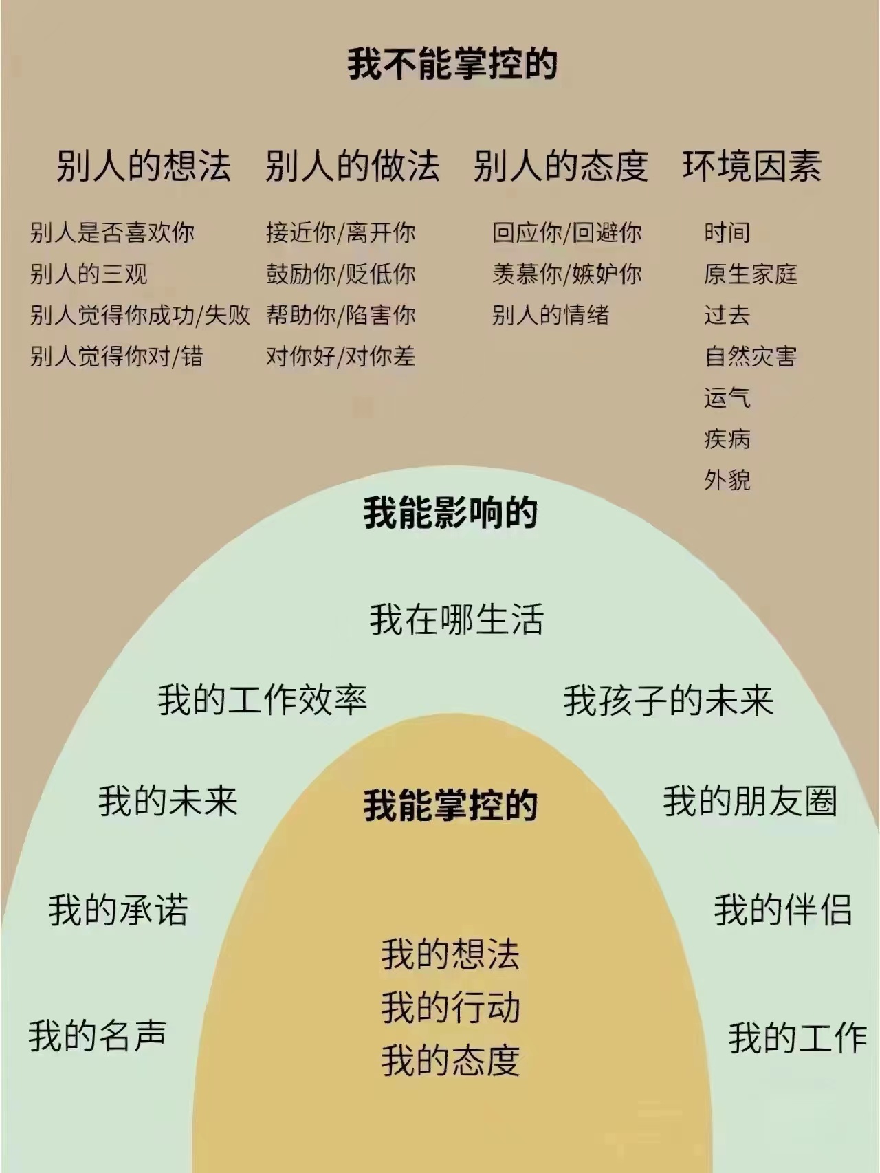 3.以我为主,为我所用,识别自己的诉求,你想要什么,把注意力放在自己身上,不要对他他人的行动抱太大期望,只掌控自己能掌控的。