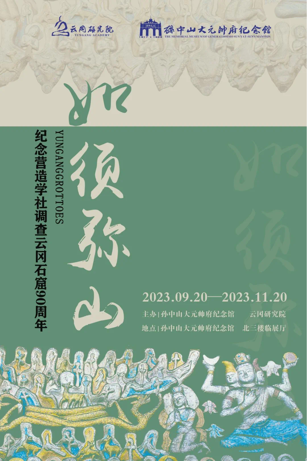 9月20日,由孙中山大元帅府纪念馆与云冈研究院联合举办的“如须弥山:纪念营造学社调查云冈石窟90周年特展”在孙中山大元帅府纪念馆北三楼临展厅正式展出,展期为2023年9月20日至11月20日。