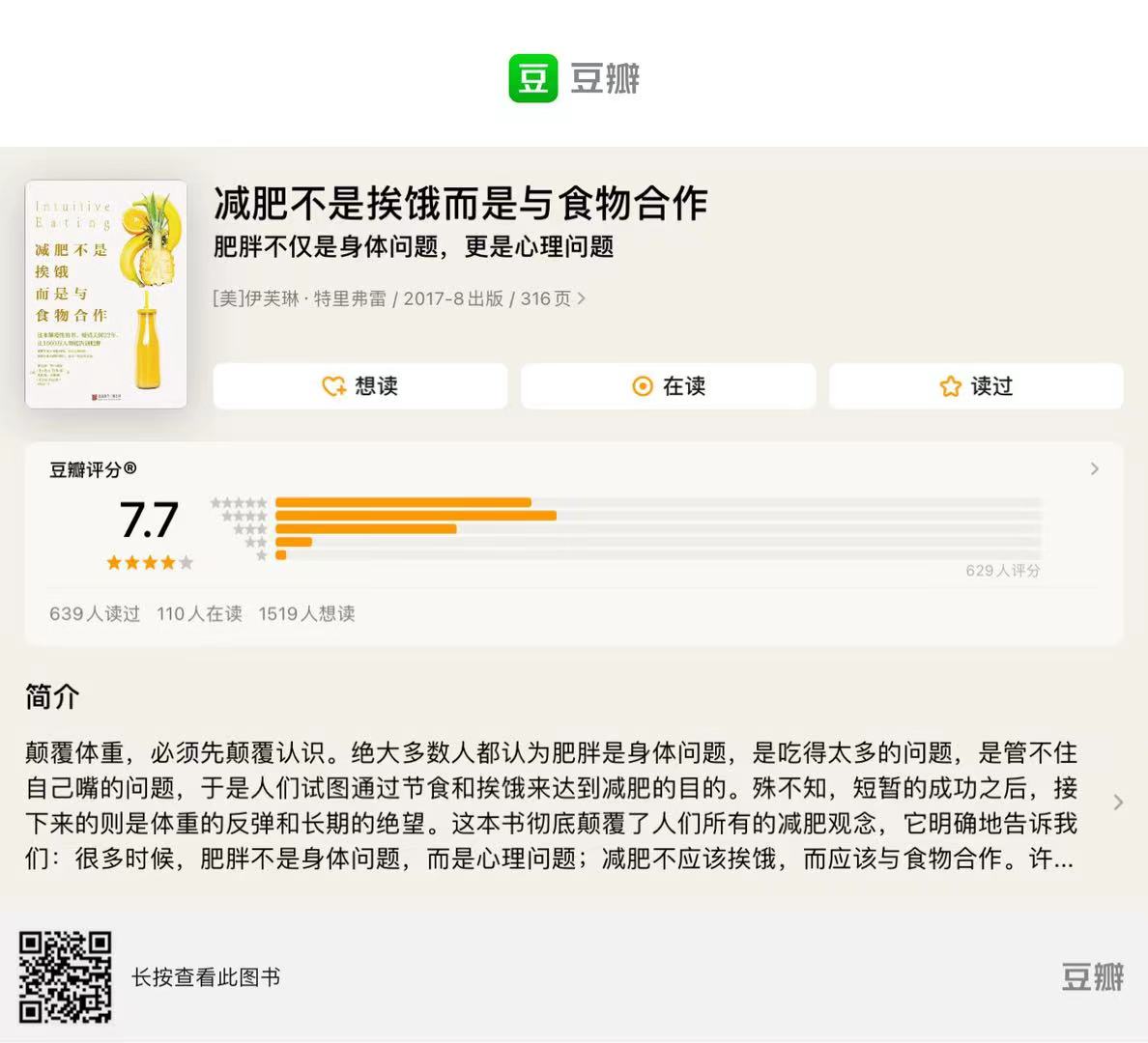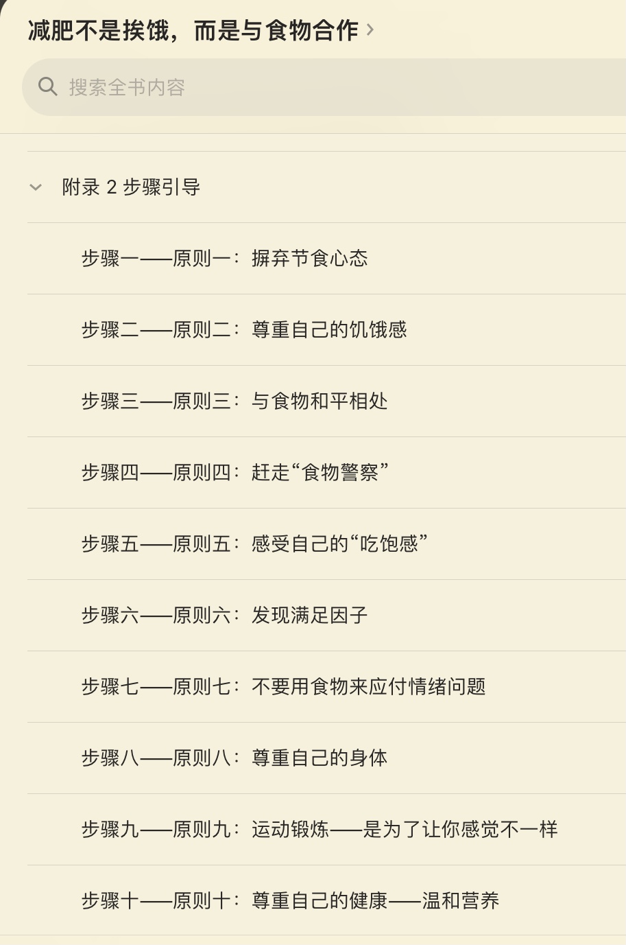 当你摆脱了食物的统治和对身体的焦虑,不再将其视为生活的中心时,就会有空间和精力追求其他梦想,发现人生更高的目标。成为“与食物合作者”并非易事,需要你有高度的自觉性和坚定的决心。它意味着放弃旧的生存方式,打开看待生活的新方式。也许还需要你进行心灵探索和自我反省,去发现节食是否阻碍了你过更好的生活。要改变这种观点也许一开始很难,最终,这将成为你永久的生活方式,给予你莫大欣喜。