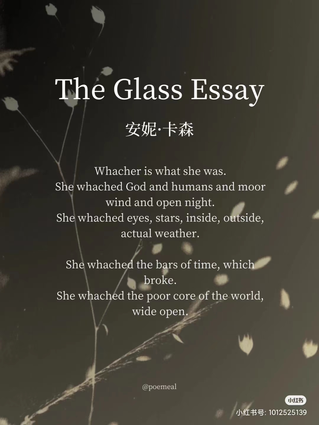 来源 :《Night Music》Charles Simic, 《The Glass Essay》Anne Carson