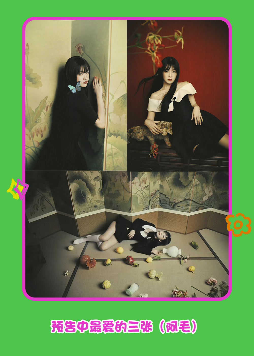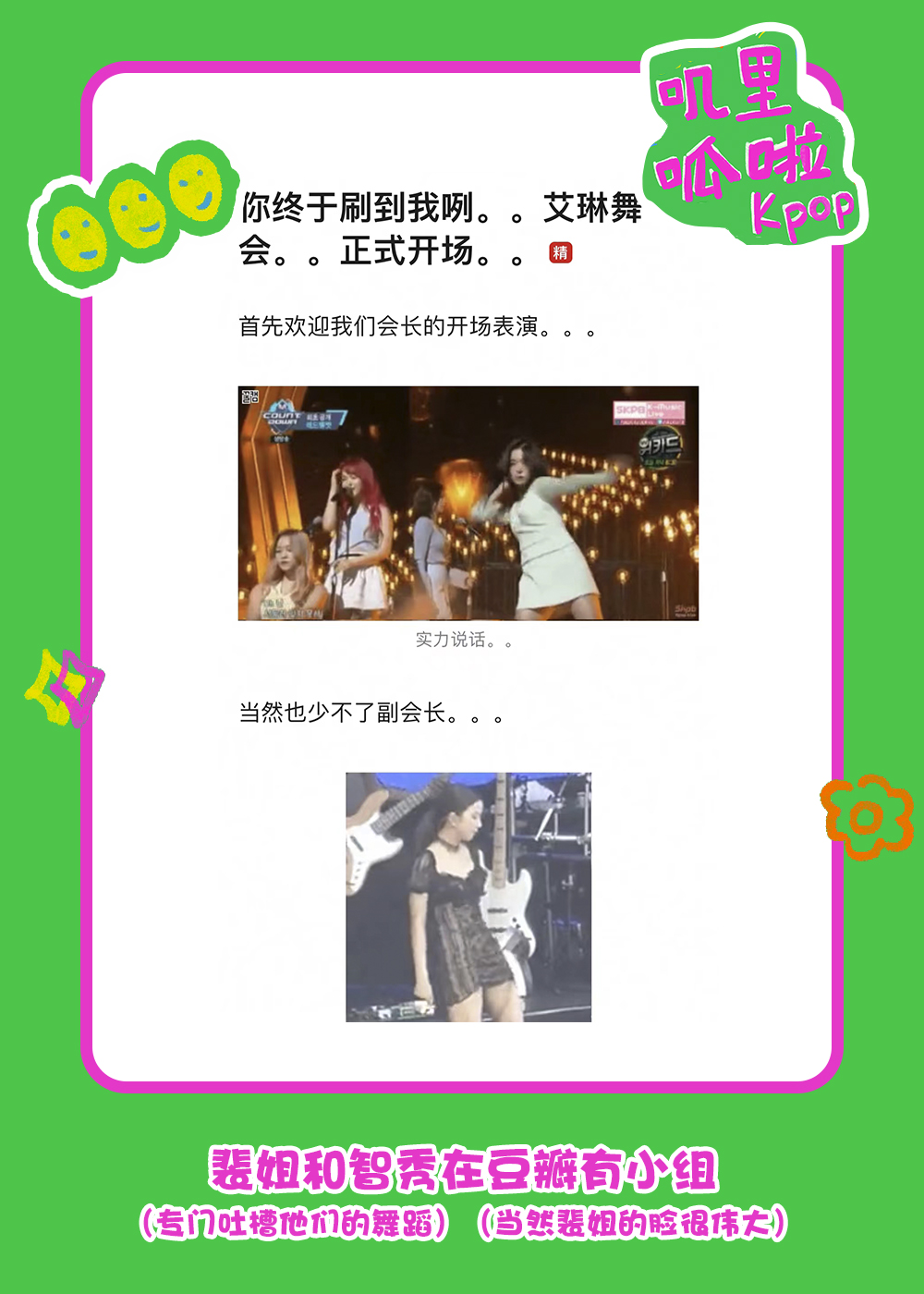 Kpop注释:Red Velvet(简称 红贝贝、毛);前NMIXX成员Jini、前 Gidle 徐穗珍;G-IDLE、IVE(张元英)和LE SSERAFIM(小樱花)、Got7(王嘉尔)、少女时代