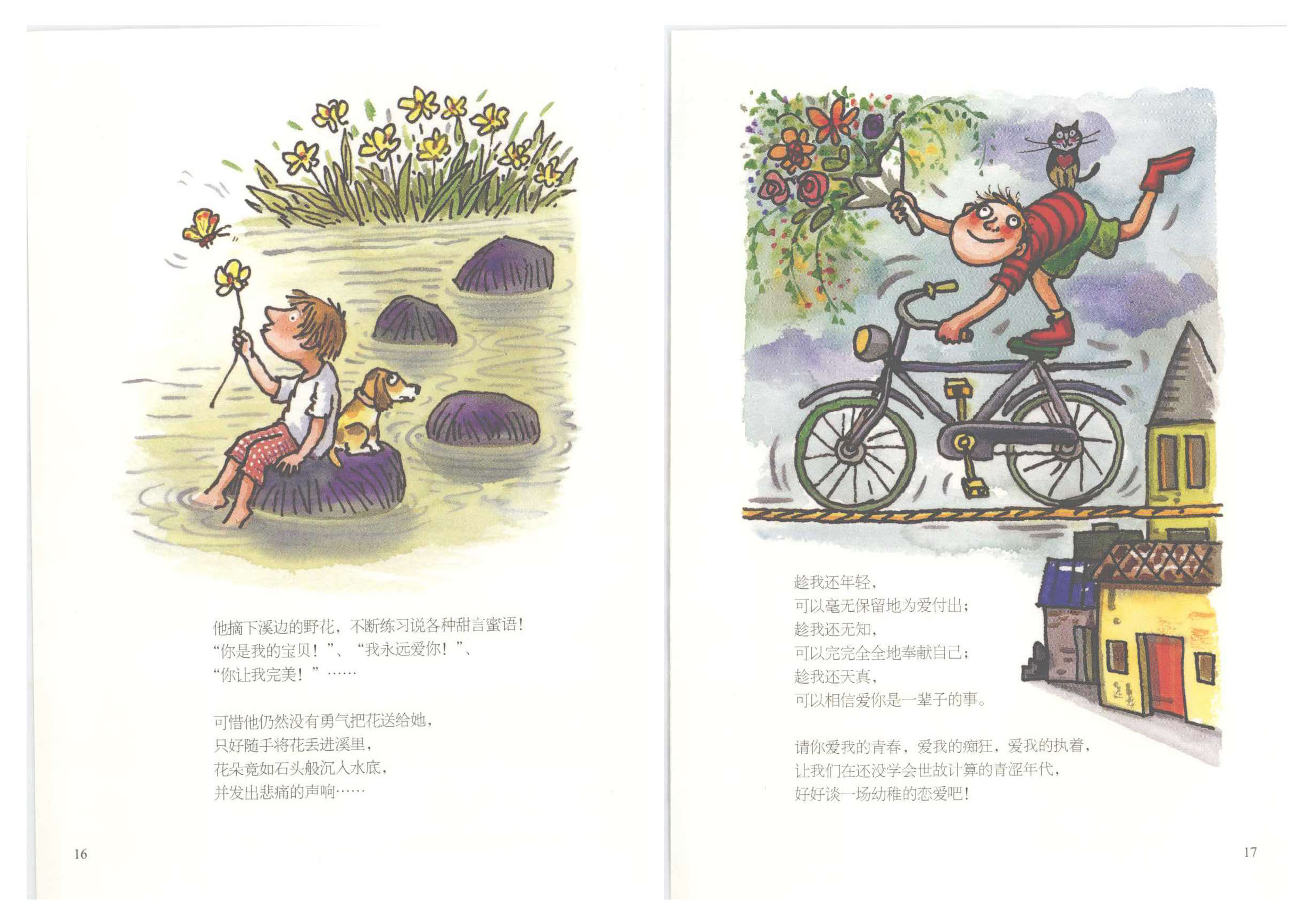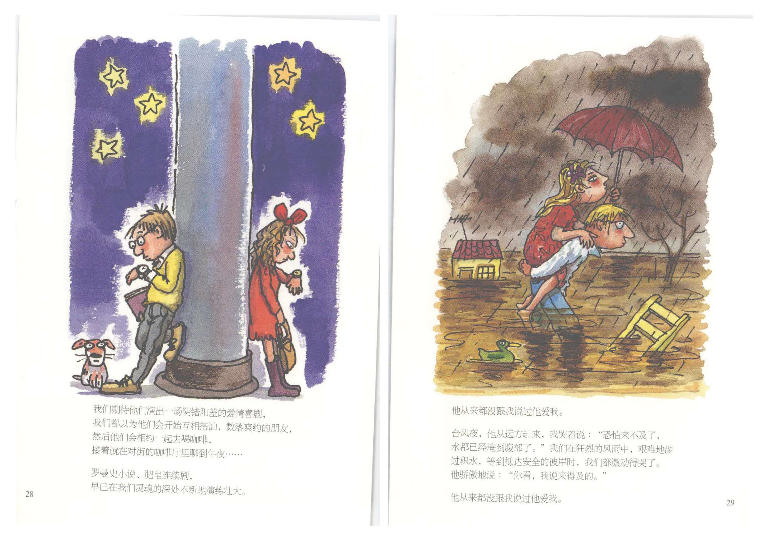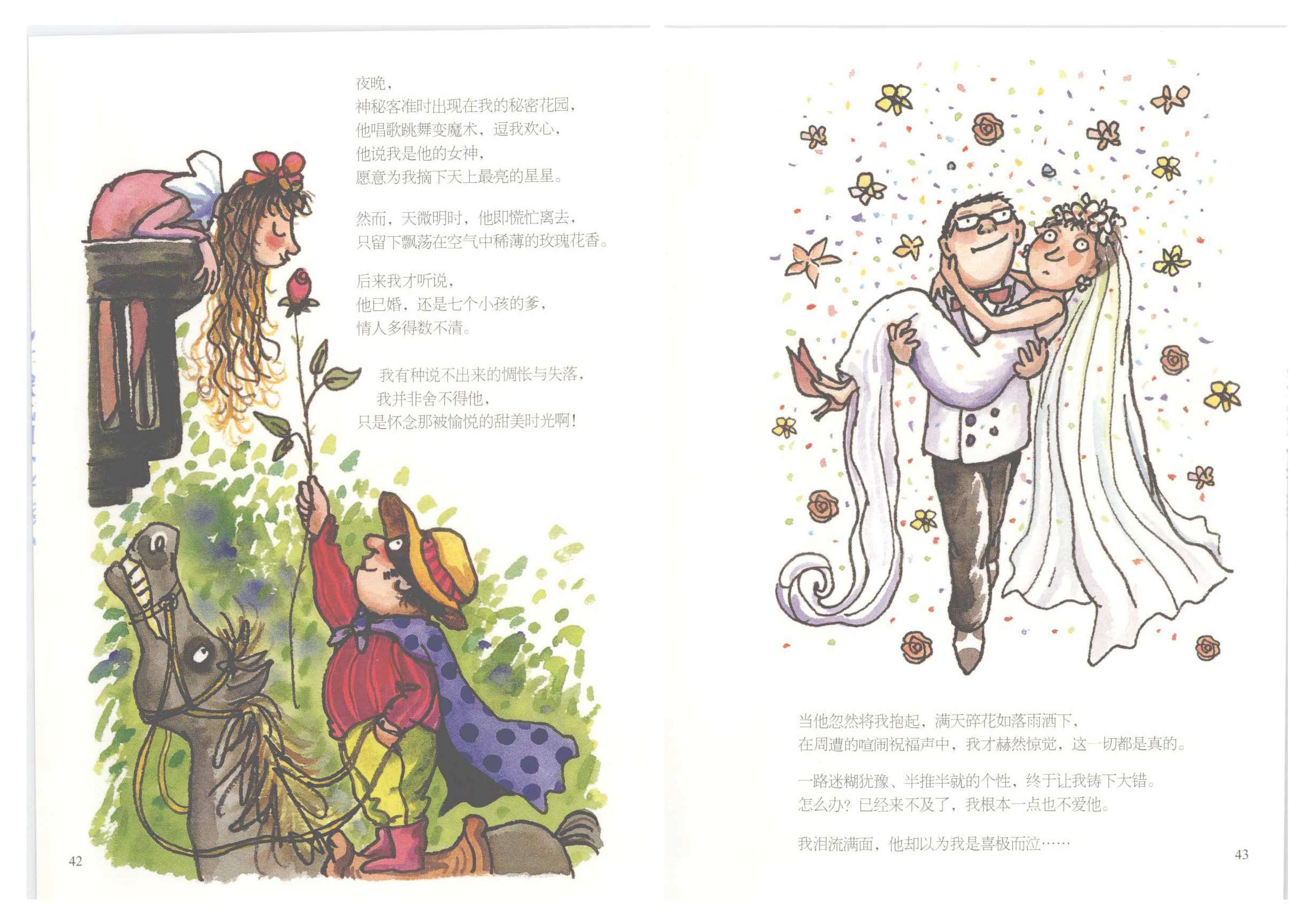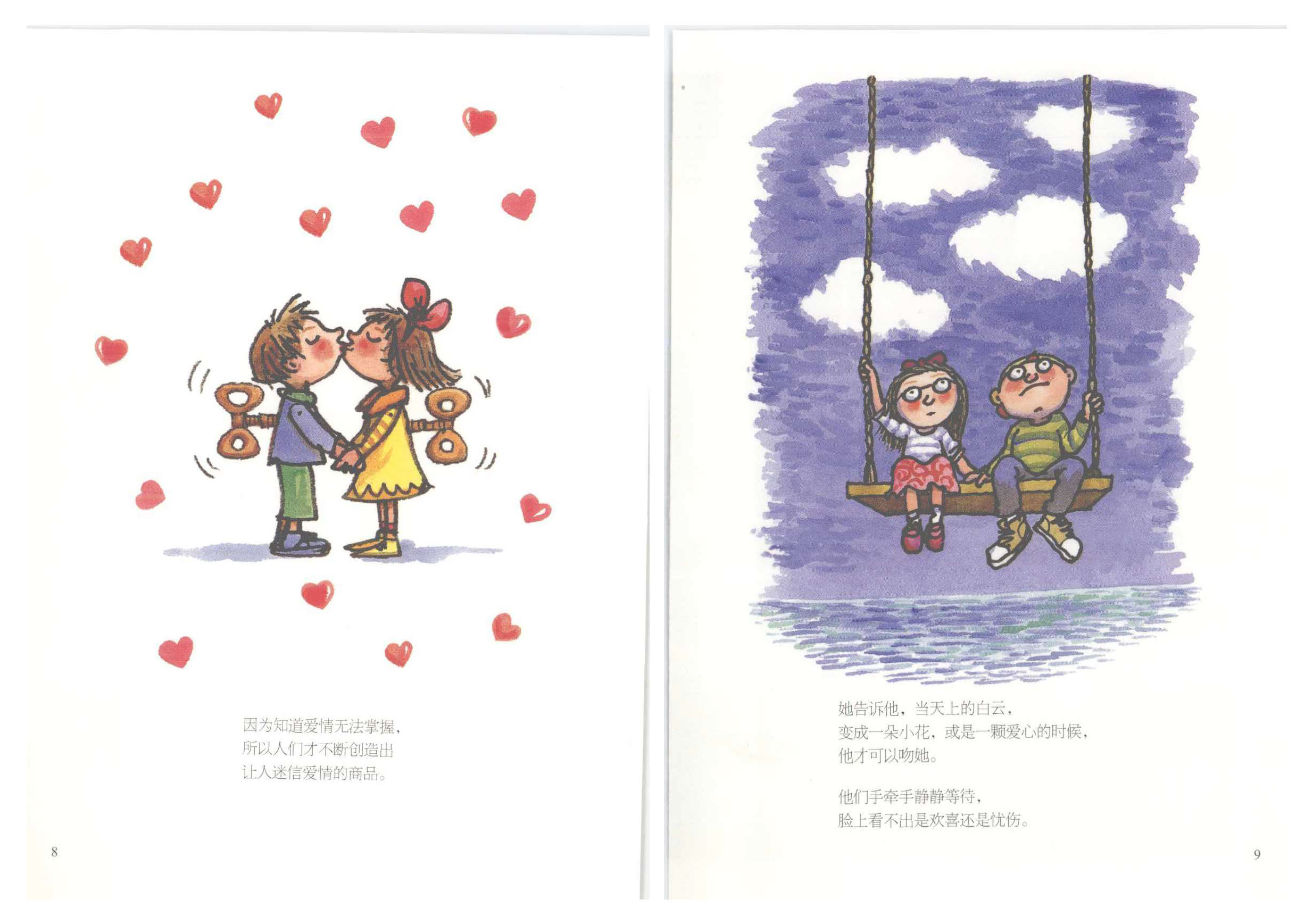 我好认真看完,我甚至觉得几米在为我写诗,他在为每个恋爱的人写诗,对爱情都有不同定义。反复无常的,看不穿,摸不着,晰不清,听不透,释不通,或许就是爱。