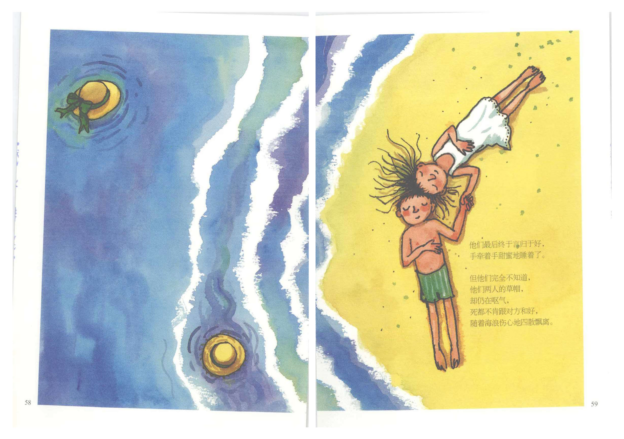 随着海浪伤心地四散飘离。