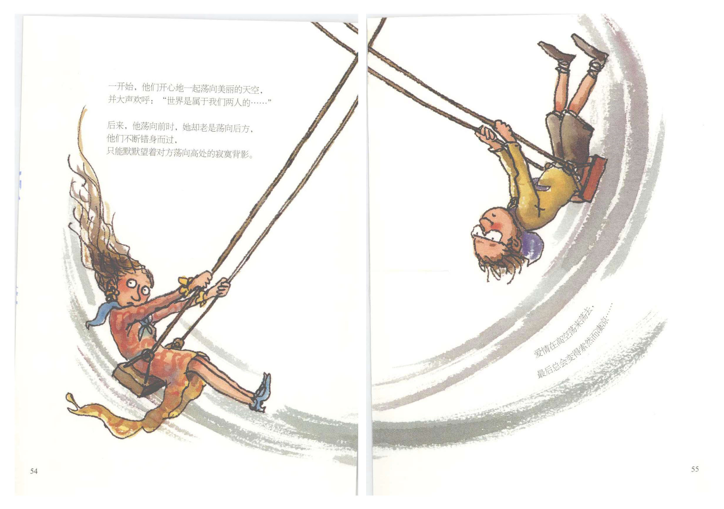 只能默默望着对方荡向高处的寂寞背影。
