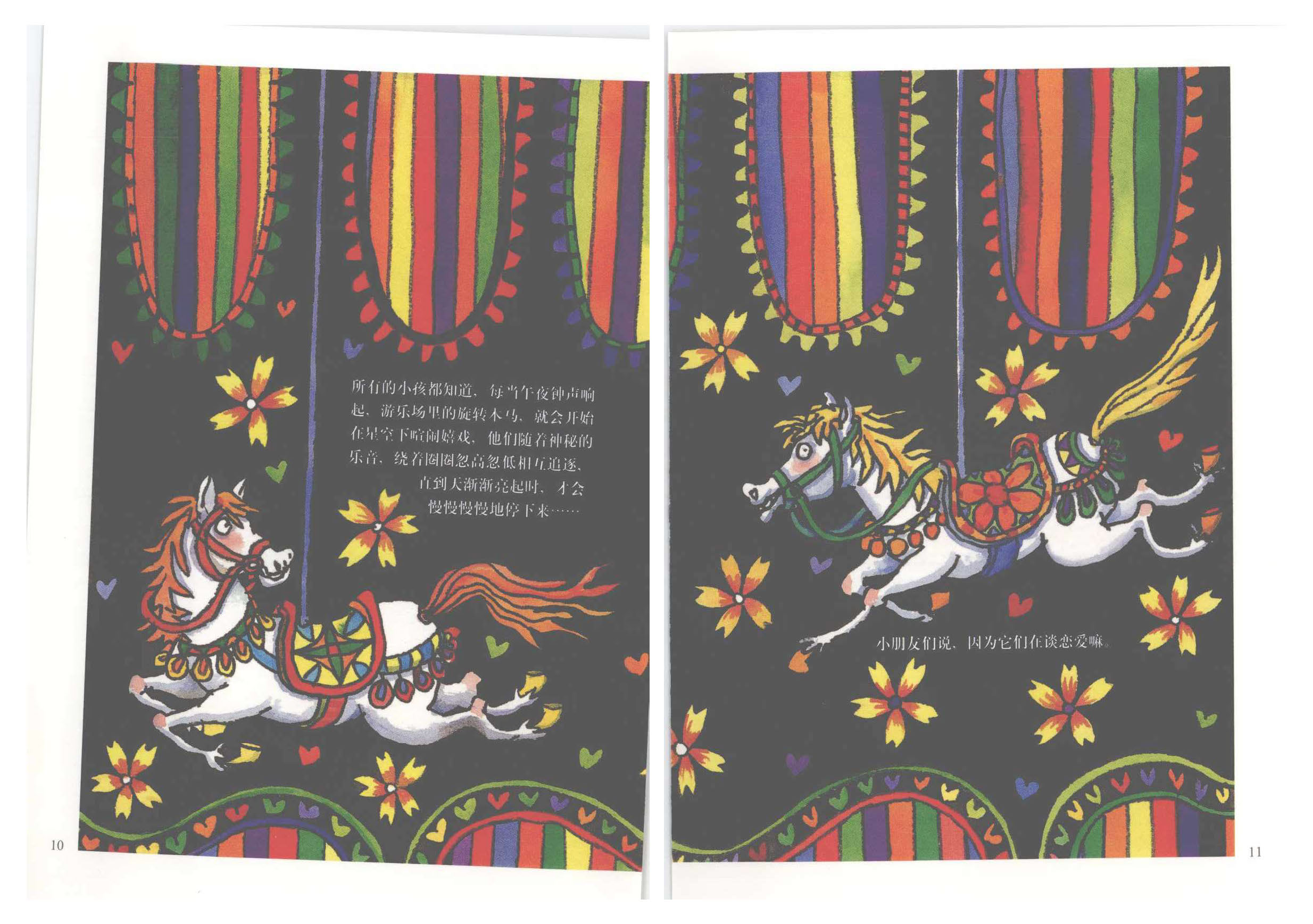 03:45 所有的小孩都知道,每当午夜钟声响起,游乐场里的旋转木马,就会开始在星空下喧闹嬉戏,他们随着神秘的乐音,绕着圈圈忽高忽低相互追逐,直到天渐渐亮起时,才会慢慢慢慢地停下来······