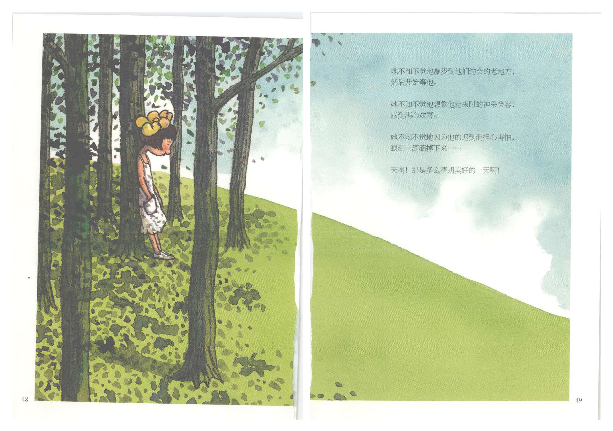 她不知不觉地想象他走来时的神采笑容,