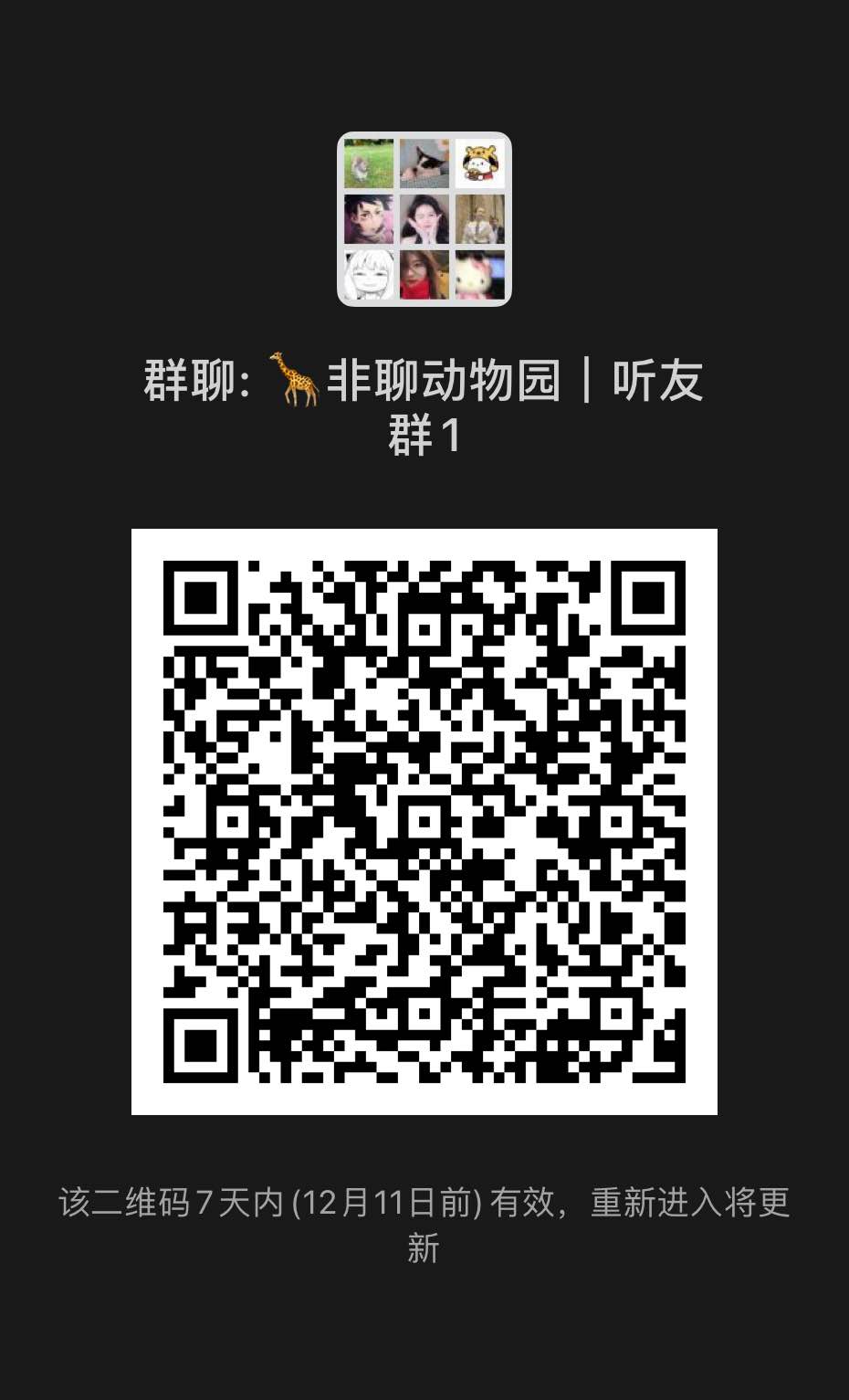 【非聊听友群】扫描二维码加入「非聊」动物园听友群,和我们一起探讨真实非洲呀~