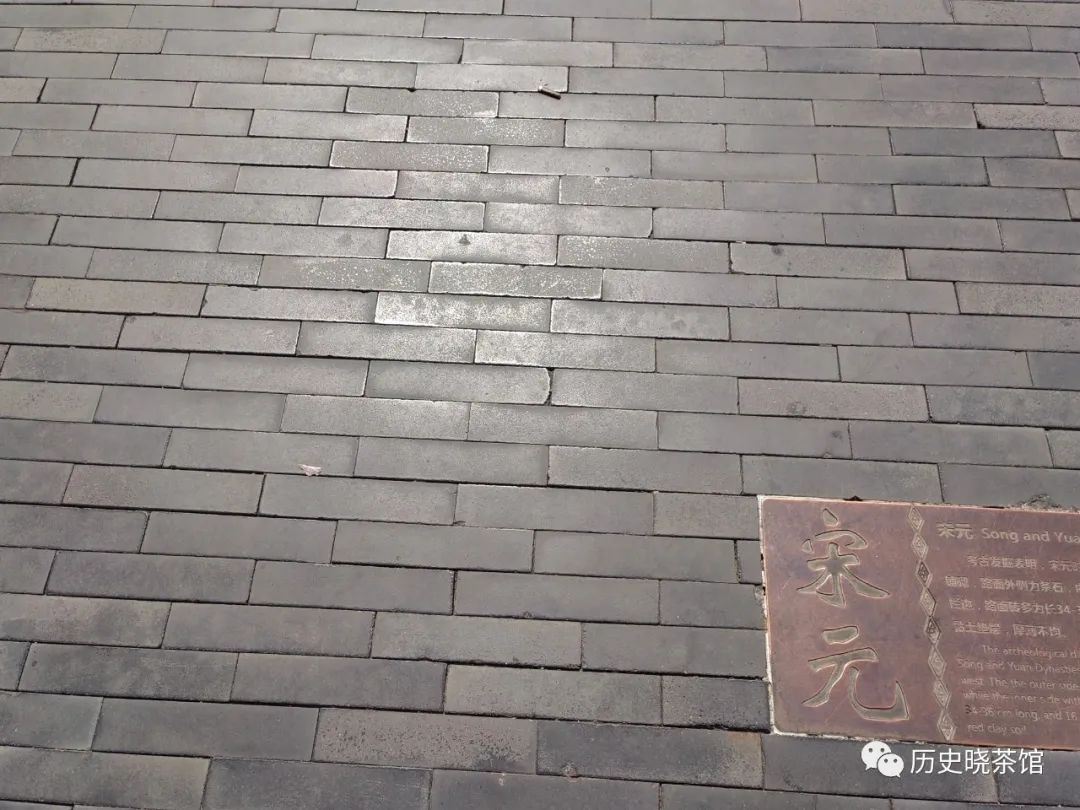 北宋的砖与宋元砖大小上差不多,但是北宋路面用地砖按“人”字纹平铺,而不是侧放,显得大气舒朗。