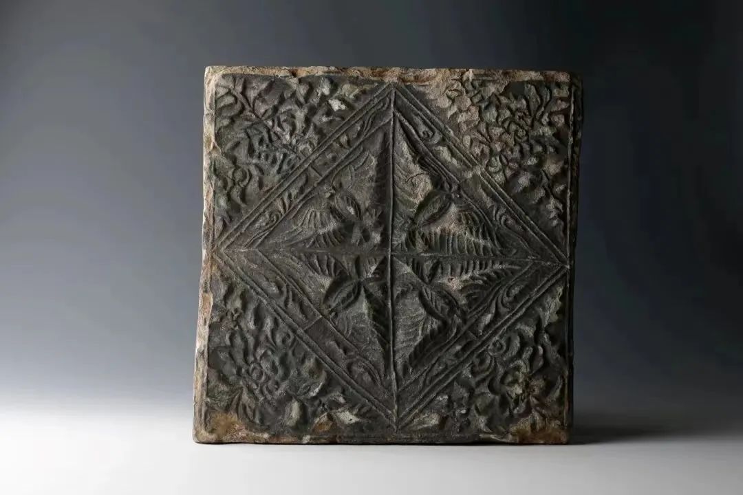 在南汉宫殿遗址出土的地砖,模印着蝴蝶牡丹纹,繁复精致。