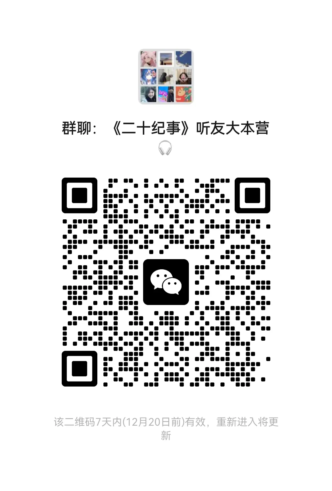 请扫码进群 或 添加微信:DZX306122968(备注:二十纪事听友群)