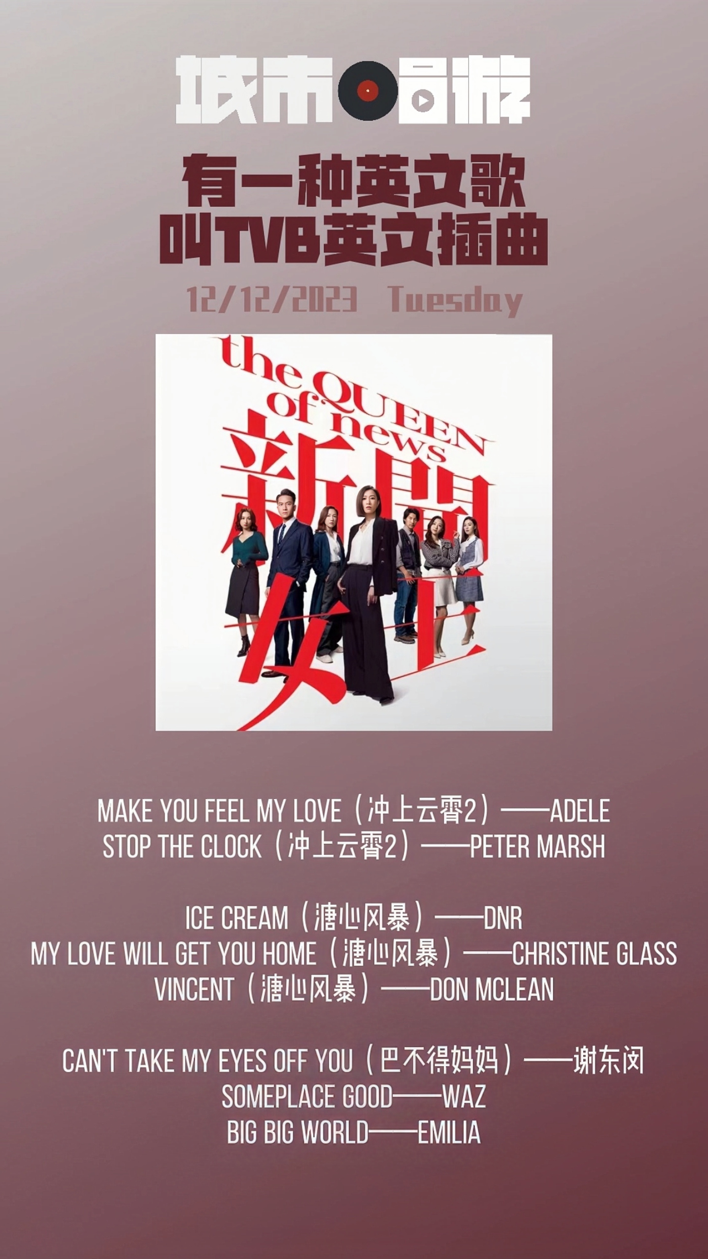 可能是版权费太贵?TVB过去引用的英文歌插曲其实有很多都不是什么名曲,很多歌手在音乐软件上只有几百个人关注。这些我们甚至不知道是谁唱的英文歌,却成为我们脑海中对某一个人物或剧情的解码锁,可能连原唱者都不知道,自己的歌在大洋彼岸有这么多人听过,有种南非《suger man》的感觉,这些音乐成为我和你的记忆链接。