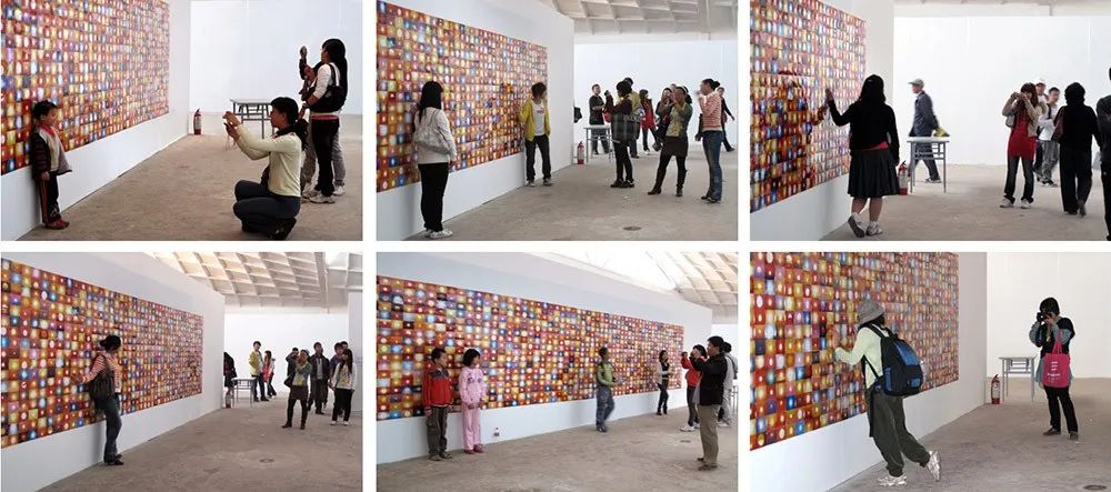 人们在平遥摄影节上和作品合影,Penelope Umbrico,2009
