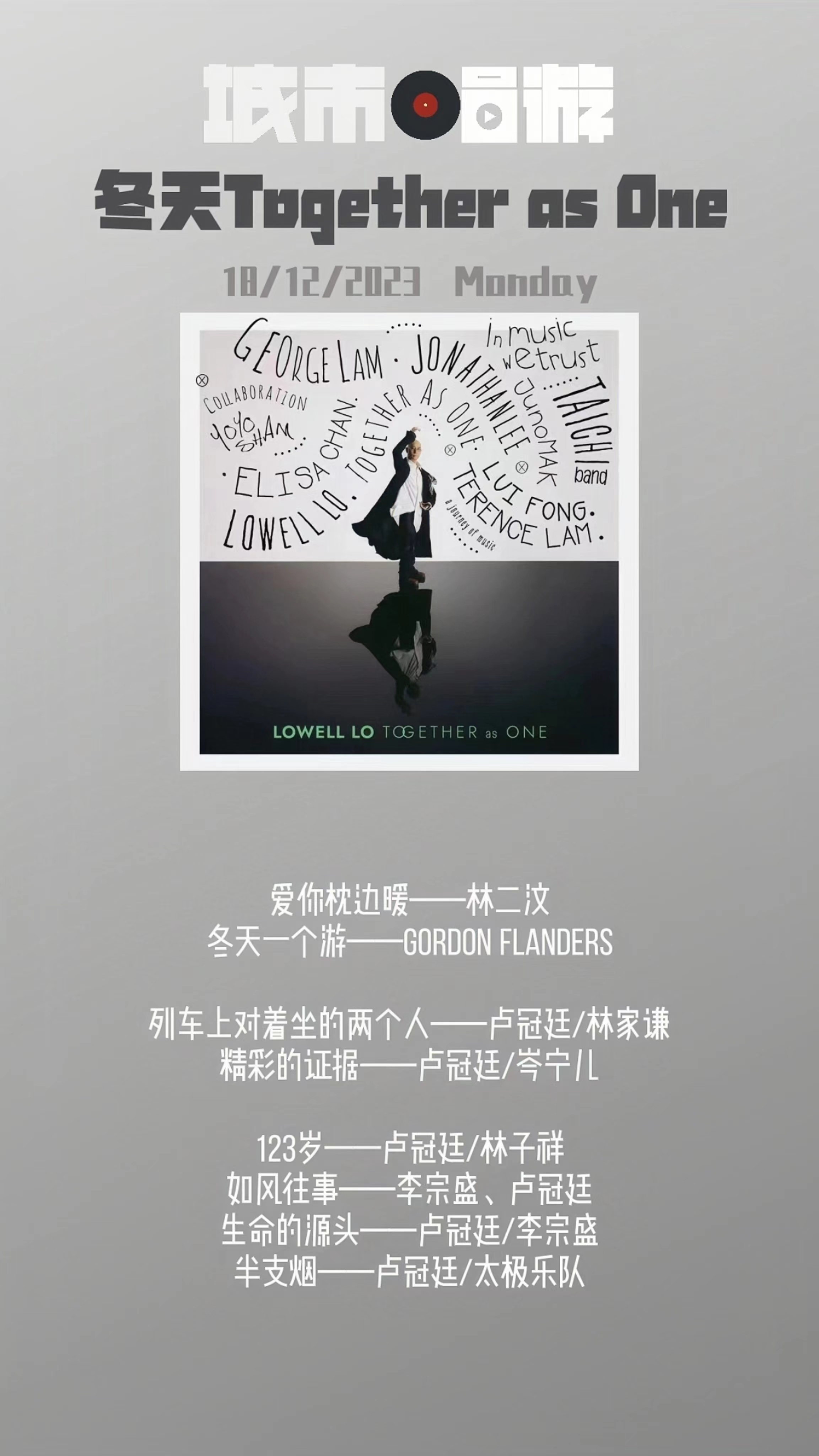 现年73岁的卢冠廷日前推出全新专辑《Together As One》,可以说是一场卢冠廷的音乐友人聚会。卢冠廷邀请来林家谦、麦浚龙、林子祥、陈洁灵、 吕方、 岑宁儿、李宗盛及太极乐队,合共8个不同的音乐单位,唱出8种生命体验。