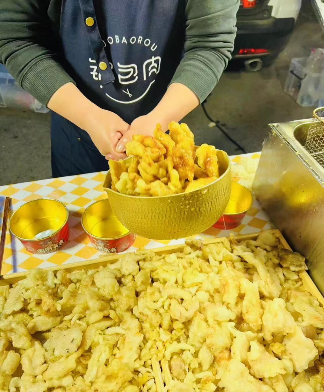 逛到傍晚,下一站就是旁边的:盛华屯夜市。夜经济让北京各个夜市重新开启,这里名气不小 ,面积也大,有专属的夜市免费停车场,吃喝玩乐一应俱全。当然了,北方的夜市是属于夏季的特供,冬天咱得庙会了。
