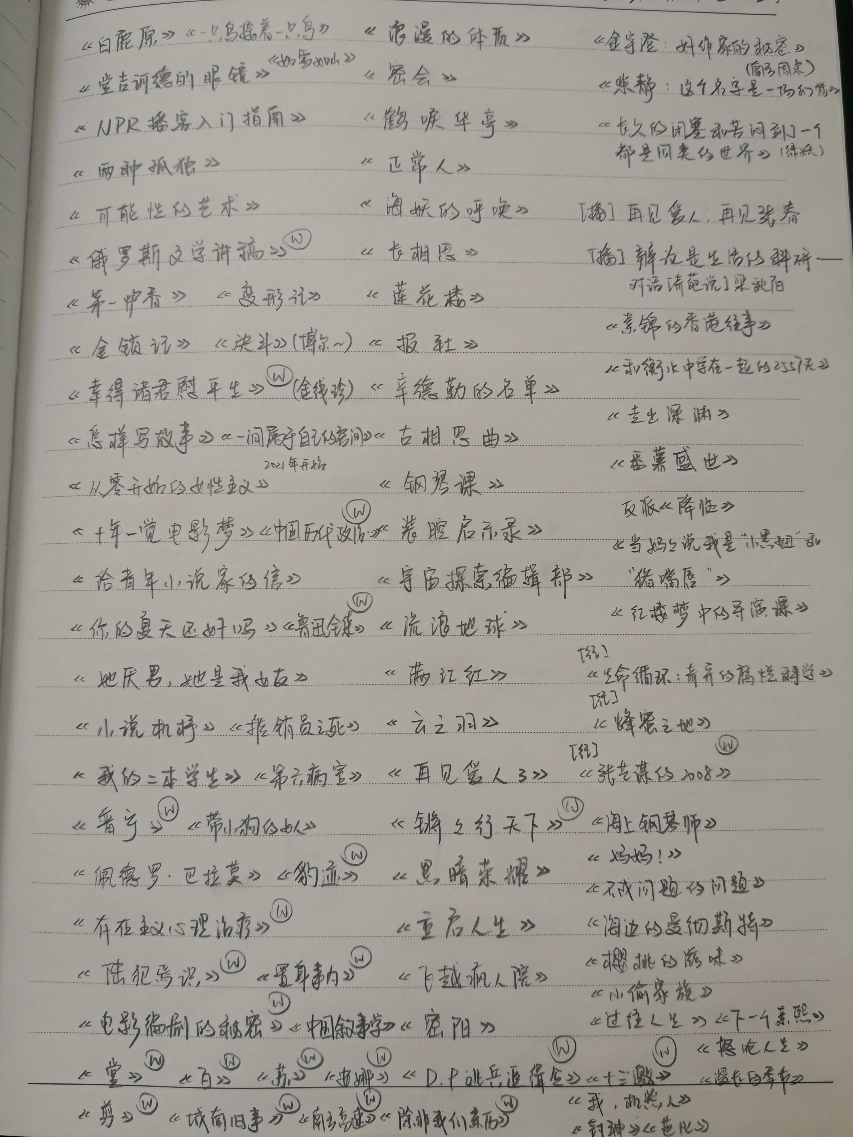 十一月初列的今年看过的作品单子(W是未完成的意思)