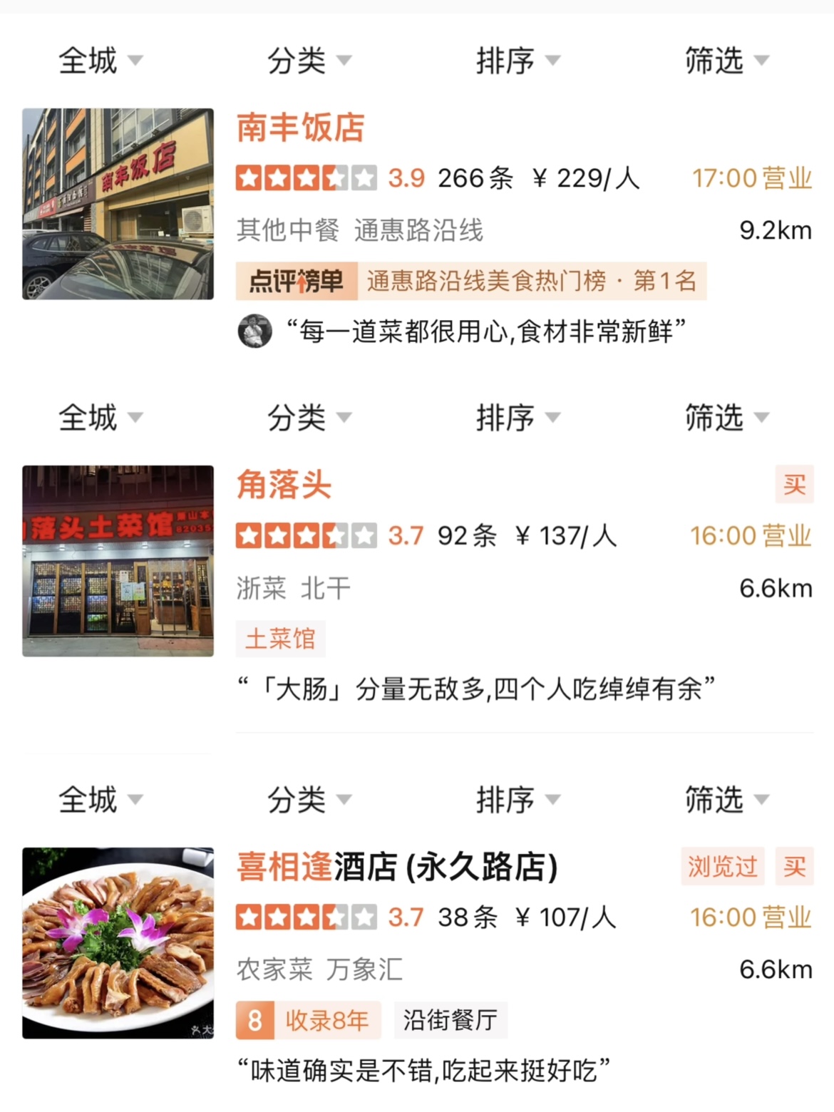 湘香蒸菜馆、福缘居、南丰、喜相逢、角落头