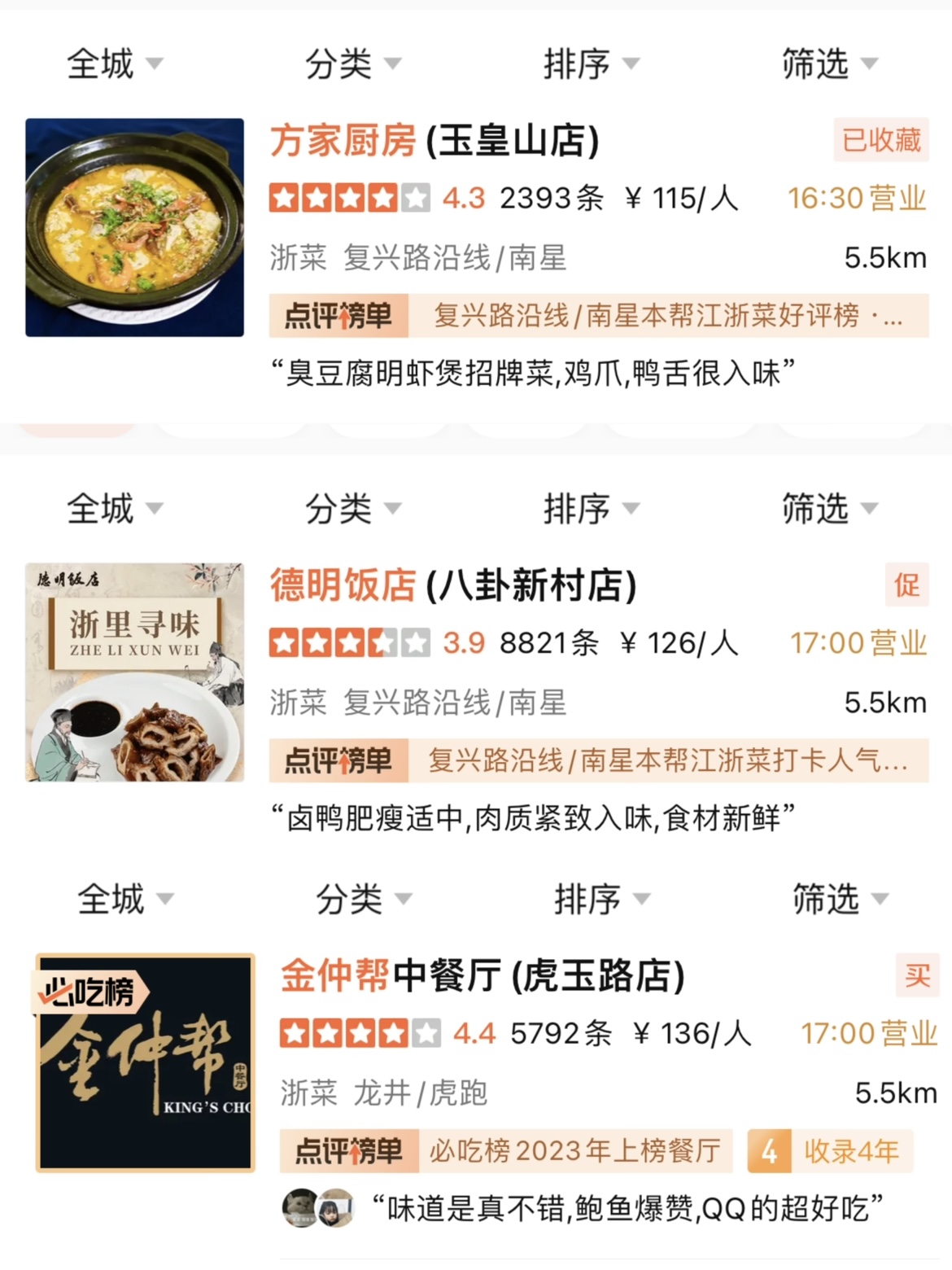 方家厨房、金仲帮、德明饭店
