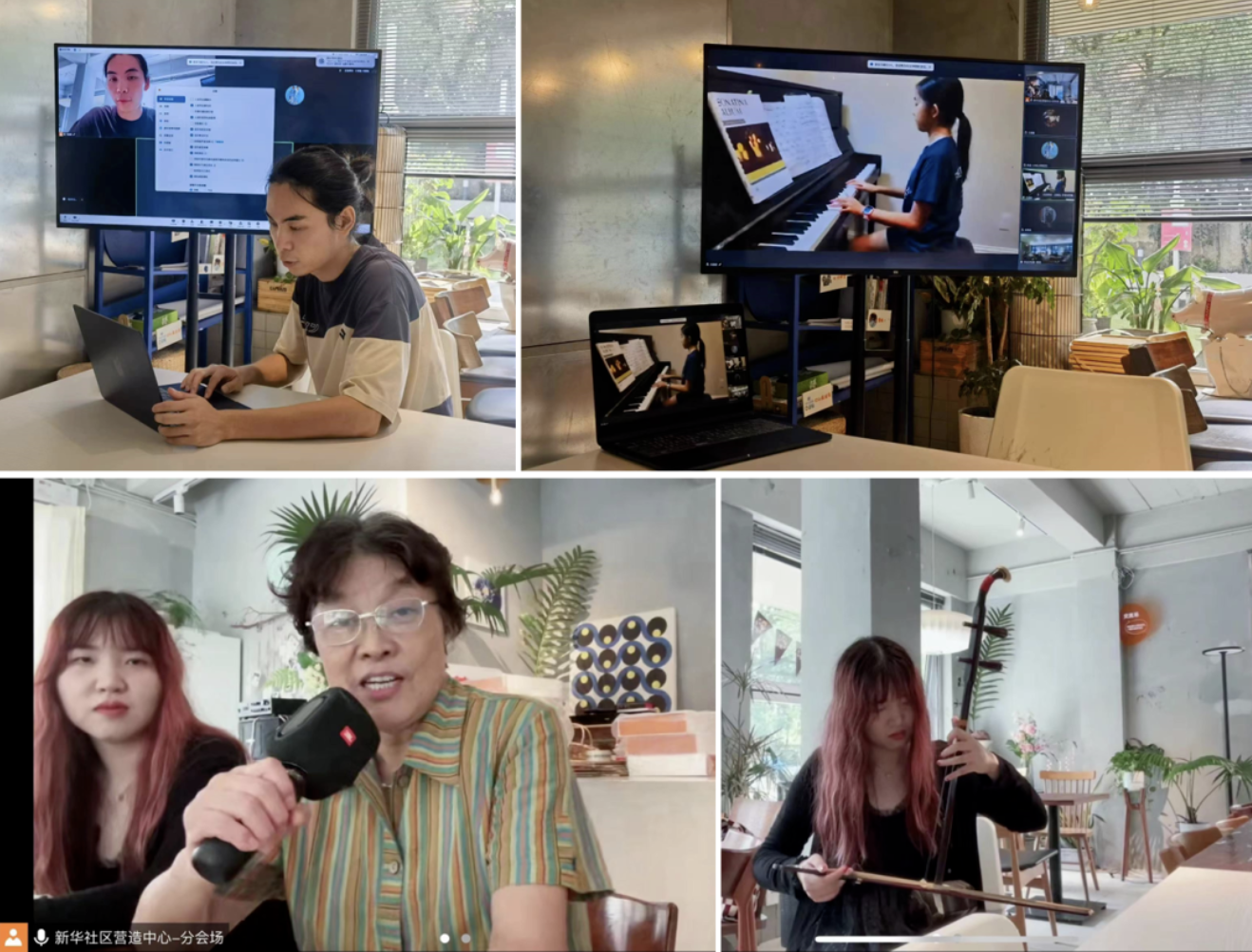 银发是岁月的琴弦,由旅居海外的青年志愿者发起的幸福随想音乐会,邀请国内的长者聆听来自全球的音乐之声。新华社区作为分会场,有年轻人与长辈在现场为大家表演节目。
