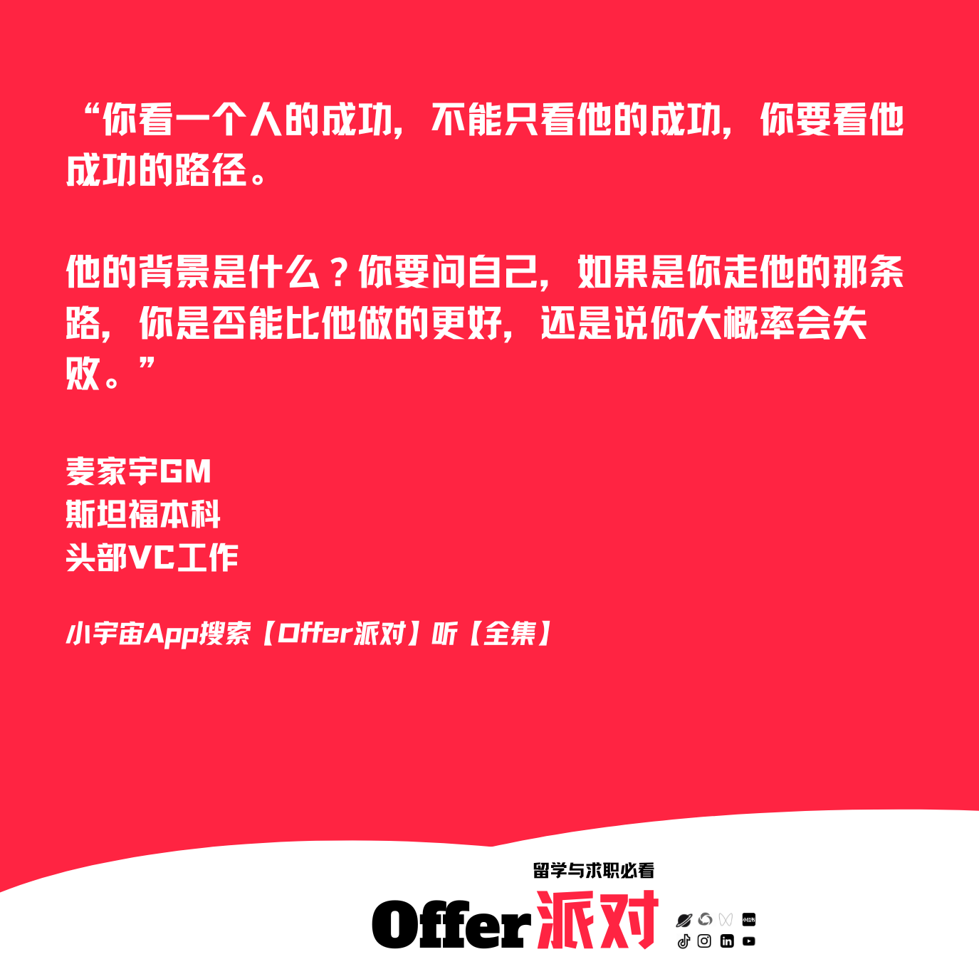 【今天我们的嘉宾本科就在美国的斯坦福大学就读,他会在这期的播客中跟大家介绍他现在从事的风险投资行业(VC)所需要的技能,他会讲述他是怎么进入风险投资这个行业的。他作为一名斯坦福的本科生,我们必须要问问他,他是怎么进入这所学校的,他是如何申请的,他是以一个什么样的背景进入到这所学校的。还有就是他的学习方法也值得我们好好借鉴。最后他也会在这里告诉大家,他是怎么样找到了人生的方向。这期干货和感悟非常的多。我觉得不管到了哪个年龄段都值得听听他是怎么说的!】