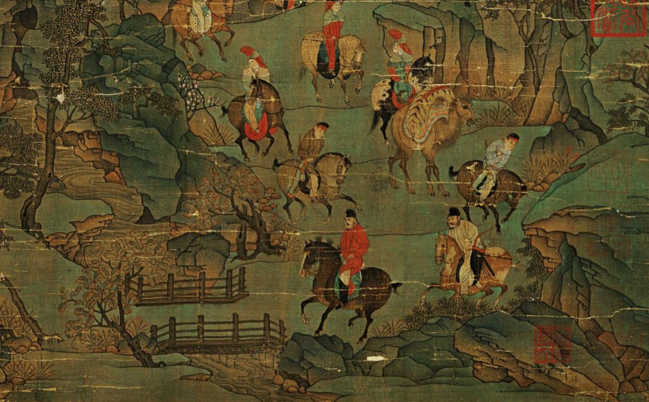 人物和马匹画的都很灵动,非常符合唐朝人物画的笔法,我们看整体感觉,跟韩干画的马,张萱、周昉的人物都很接近,跟宋朝的点景人物有较大差距。