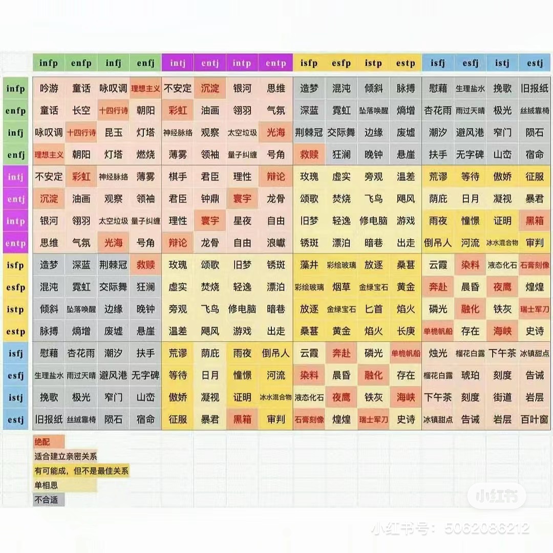 (MBTI十六人格组合名称与匹配关系)