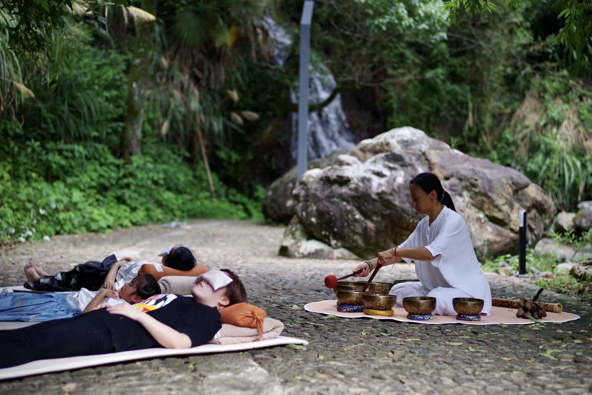 附图:在钵声中,与自然连接,感受来自大地母亲的承托和能量滋养,与万物合一