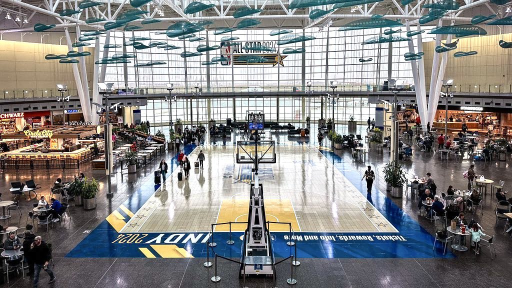 印第安纳波利斯机场为NBA全明星赛铺上了篮球场👀