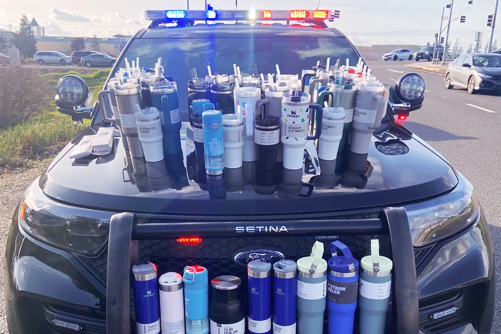 警察发现一辆车里有价值$2,500的Stanly Cup保温杯