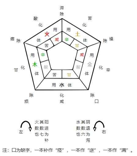 这里先要了解五脏的特征,再结合五味的性质,从实践中总结出的一套原则,并且与辅行诀还有一丢丢不同,没办法,时代太远了,总会出现传抄错误。