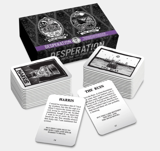 一款美国哥特风格的合作叙事游戏,玩家需要将卡牌上的文字安排给某个角色,以此触发行动,推进故事发展。