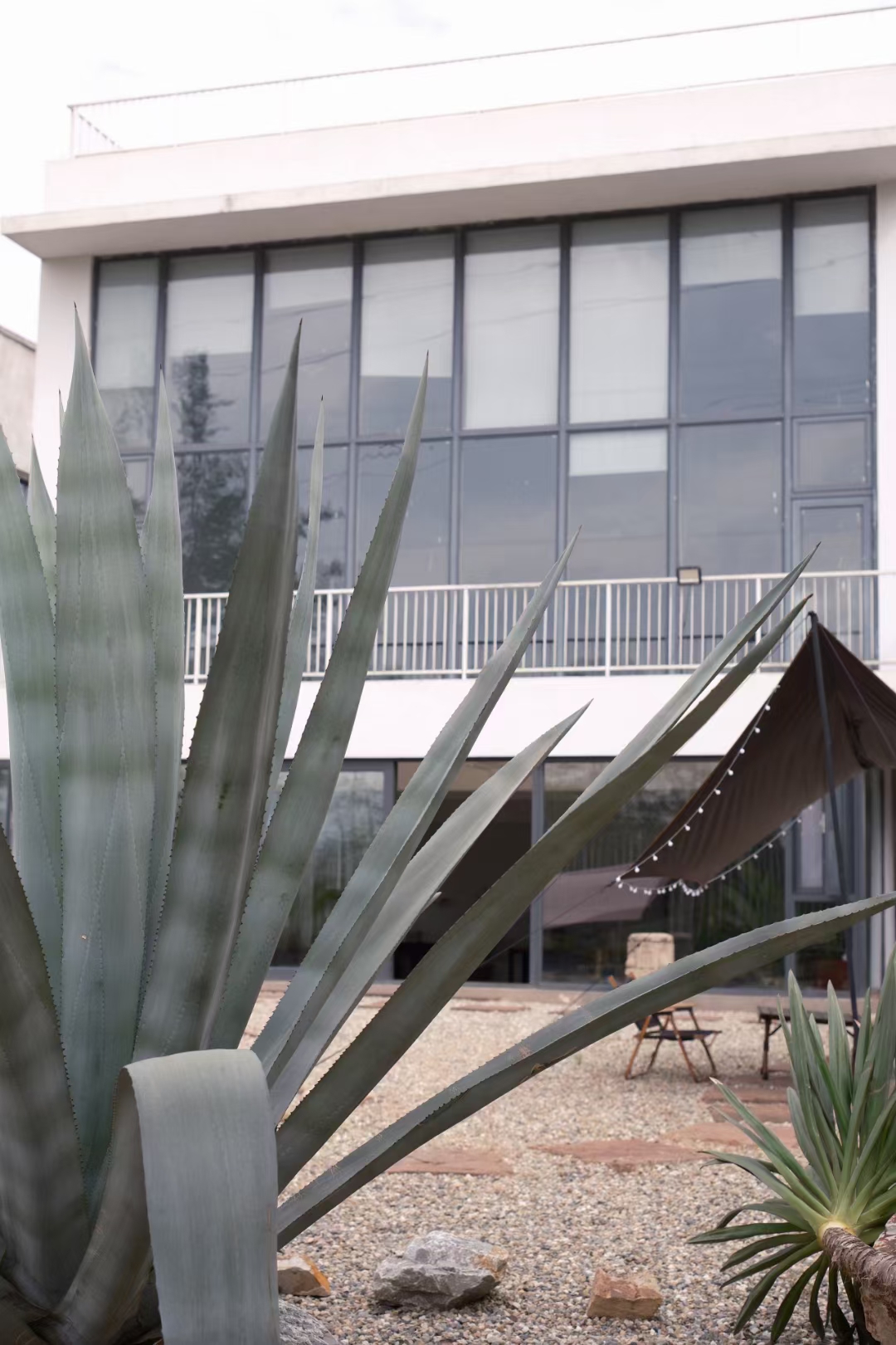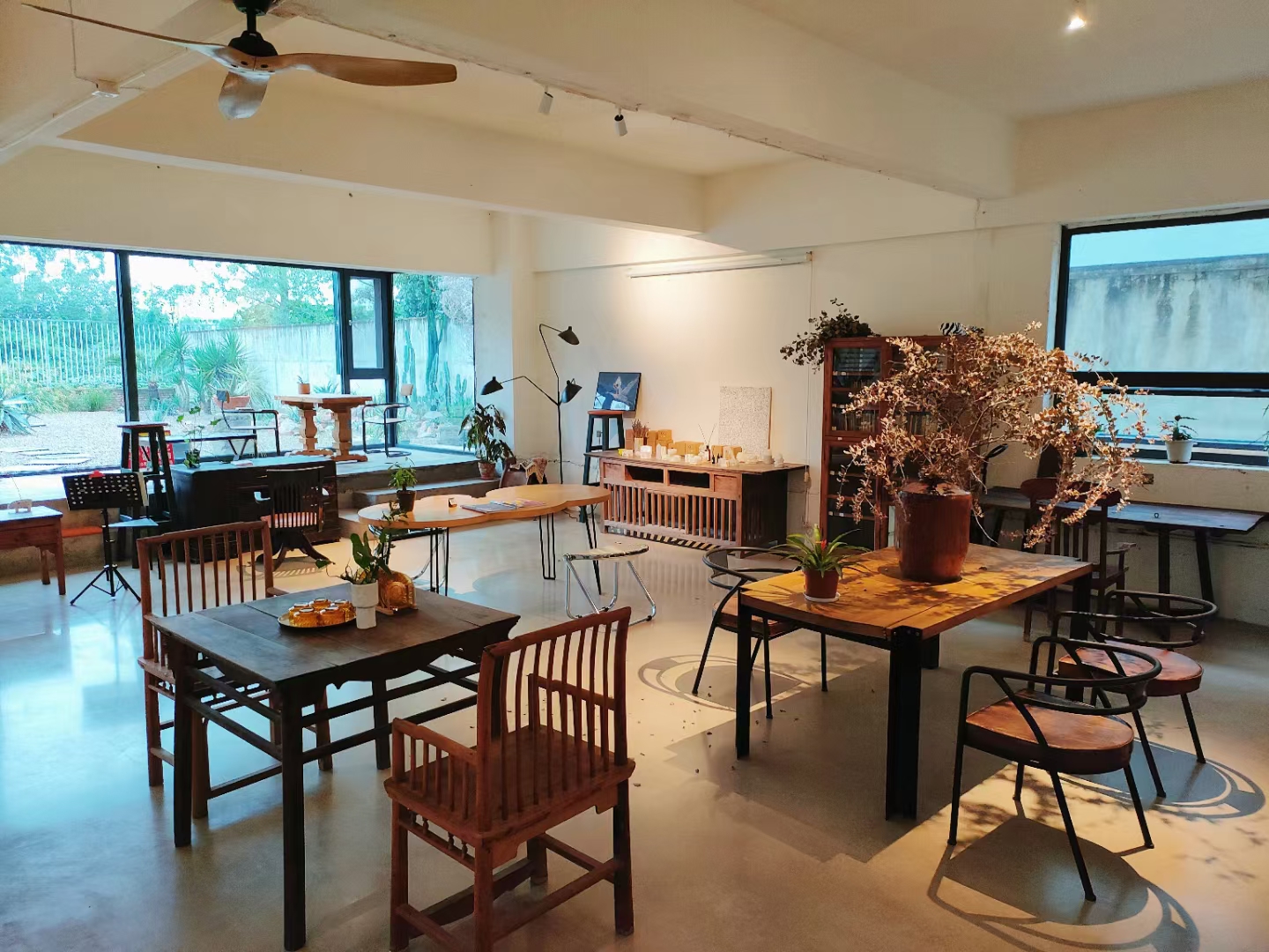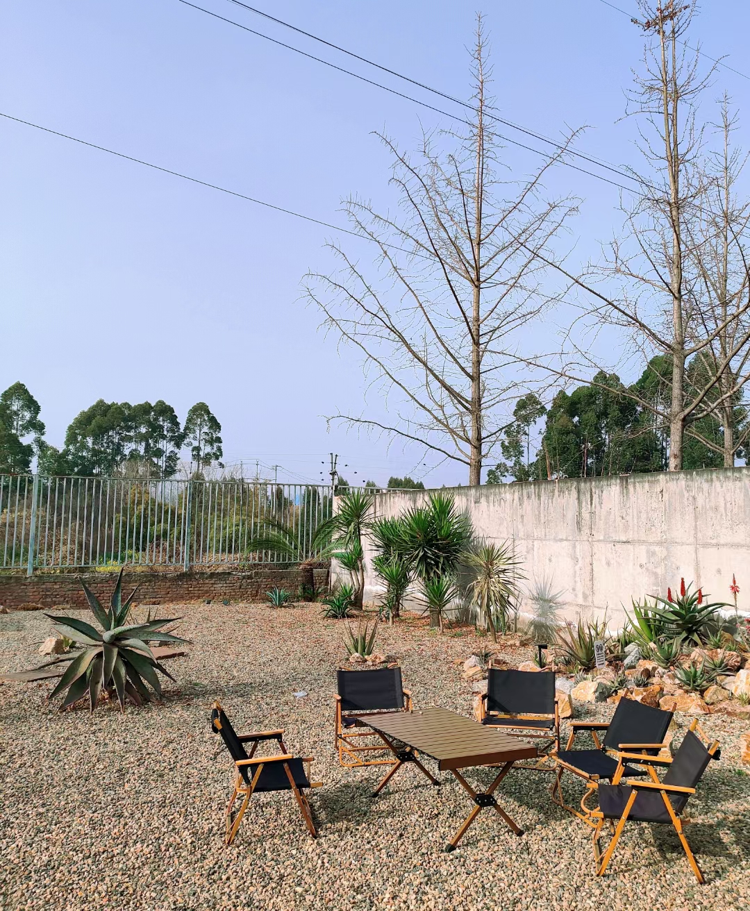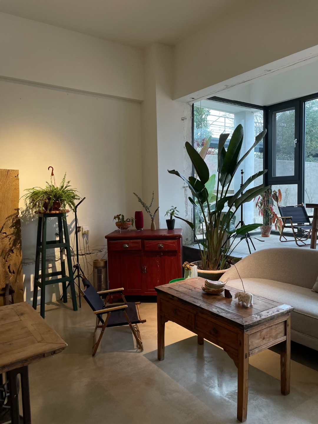 04:01 店铺特色与环境:你猜怎么着?走过蜿蜒小道、穿过白色建筑群,你会被一棵巨大的柚子树吸引,然后就来到了我们的秘密基地。店内吧台区域超大,有很多主理人们在世界各地旅行淘来的小物件、有跟他们的孩子一起做的手工,还有客人们的小礼物,后面还有200多平的秘密花园,里面摆满了复古家具和淘来的宝贝,充满了意想不到的小惊喜,他们在这个院子里布置了一片沙参类植物园,包括芦荟科和龙舌兰等众多品种,其中不乏珍稀植物。