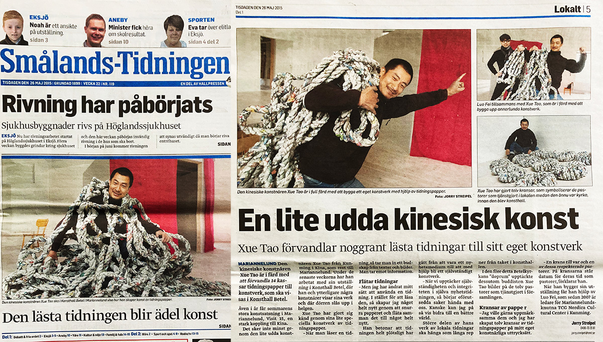 薛滔参加瑞典VISIT15艺术家驻地,瑞典斯莫兰德报头版,2015年