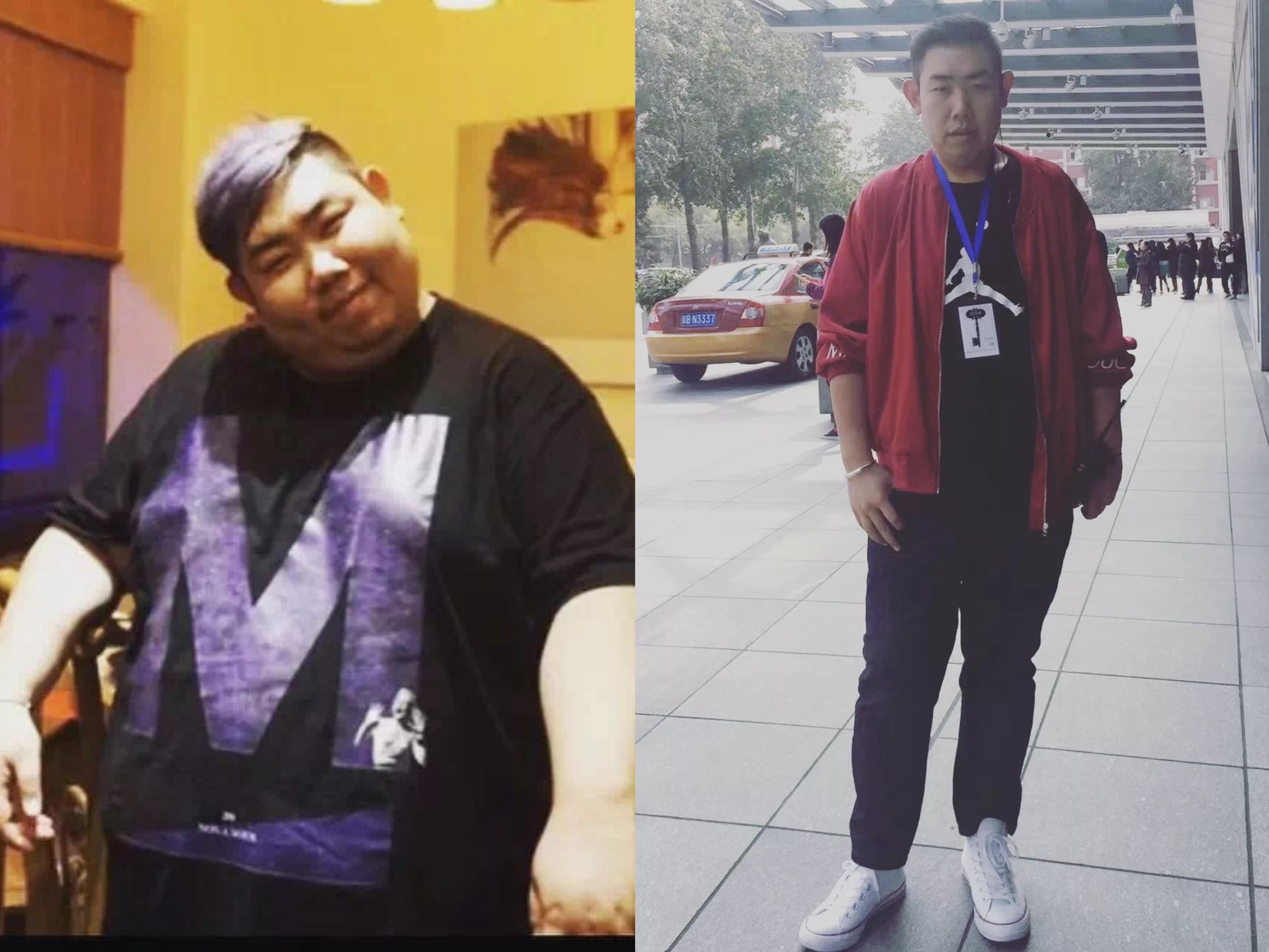 (Ray减肥前后对比照:左图为370斤,右图为减掉200斤以下)