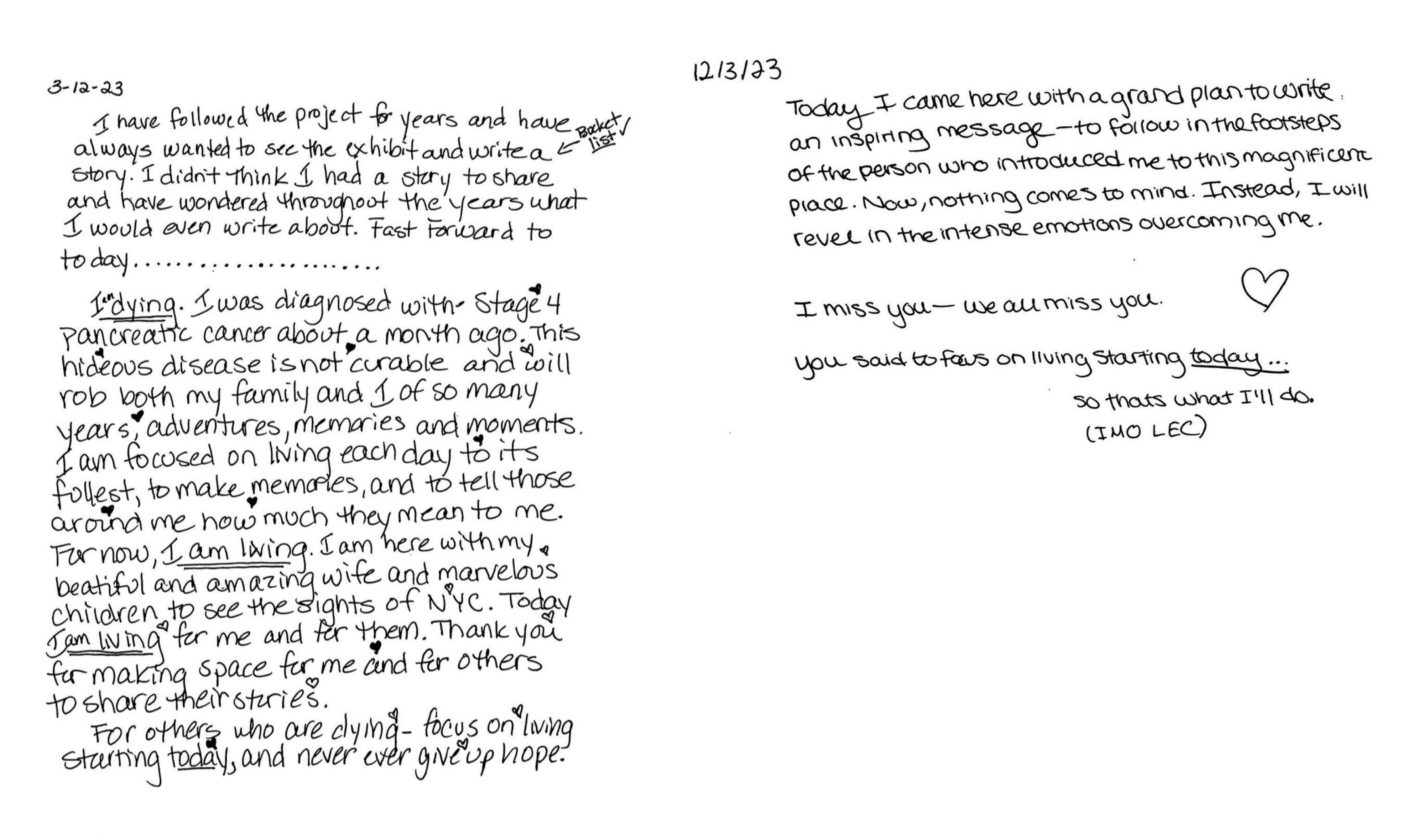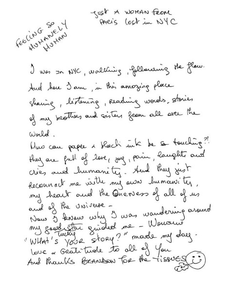 今天想要跟大家分享的,是一个我自己很喜欢的独立展览,叫做“The Strangers Project(陌生人计划)”。这是一个收集陌生人故事的展览,策展人名叫Brandon Doman,目前生活在纽约。他策划了这个流动展览,邀请陌生人们用黑色墨水笔在A4白纸上亲手写下他们的故事。他曾经带着这些来自陌生人的故事辗转于美国的不同城市,收集到越来越多陌生人写下的文字,并以纽约为根据地,展出这些故事,从东村、西村,到华盛顿广场公园、中央公园,再到位于世贸中心的Oculus。目前为止,这个展览已经收集到了超过九万个来自陌生人的故事。