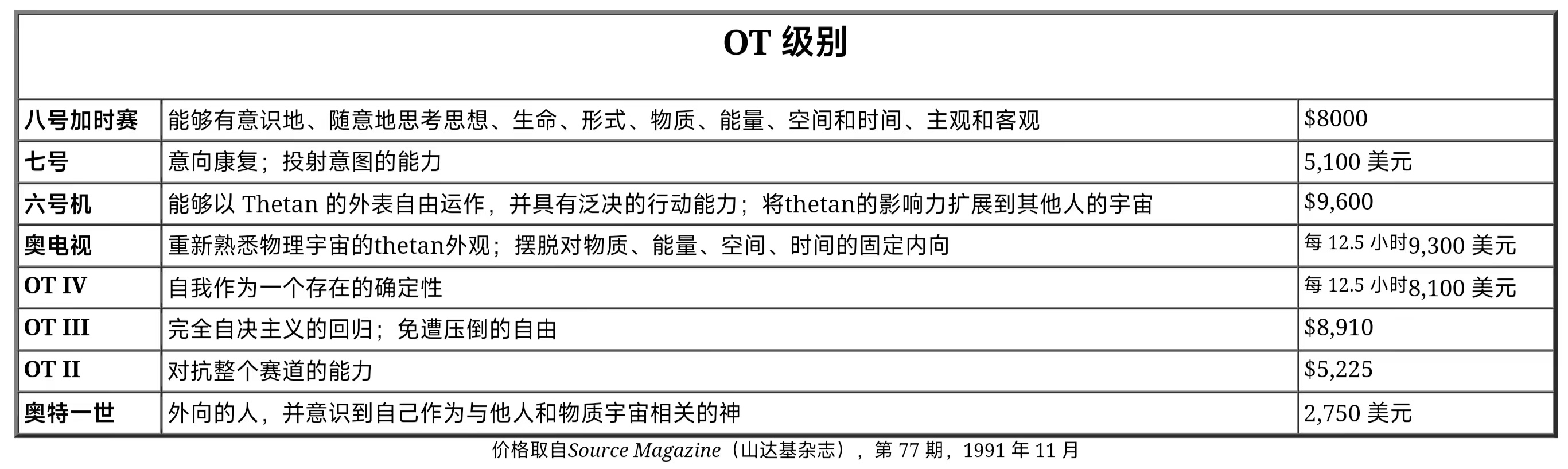 (90年代山达基的OT级别课程价格表)
