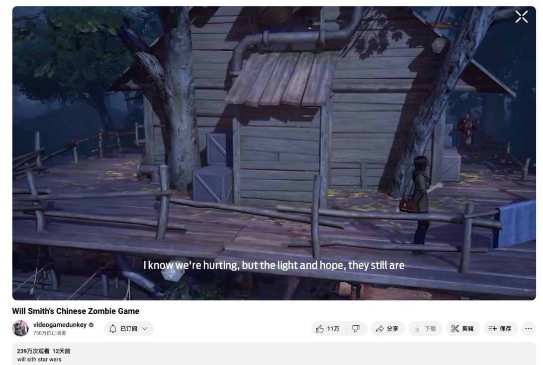 放假的这几天没太多事可做,在油管上看了不少游戏博主的视频。游戏驴子近期的一个视频引起了我的注意。这个视频名叫《Will Smith's Chinese Zombie Game》,直译过来就是《威尔·史密斯的中国丧尸游戏》。