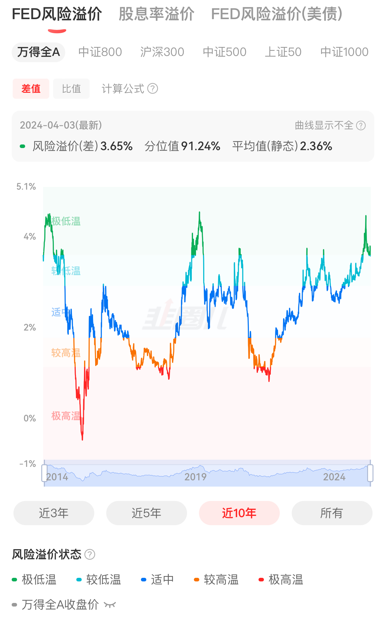 3.股债性价比:股债性价比是快速判断权益类资产合理仓位的指标,衡量的是股票与债券之间的相对吸引力。该指标越高,通常代表股票等权益类资产的性价比越高,应当配置更高的仓位,反之亦然。