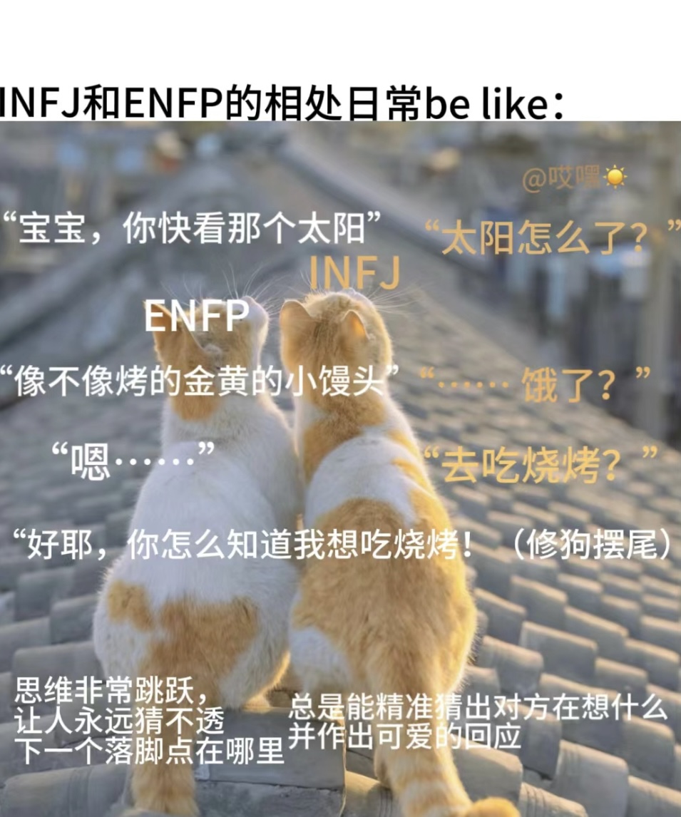 infj小老头和enfp快乐小狗的日常分享~小老头为小狗提供情绪价值,小狗在帮助小老头时行动力满分!互相欺负互相理解,真的好快乐~infj和enfp的meme图片来源:xhs博主 哎嘿BGMBLOCH! - im waiting(又是私藏歌单分享!!!)