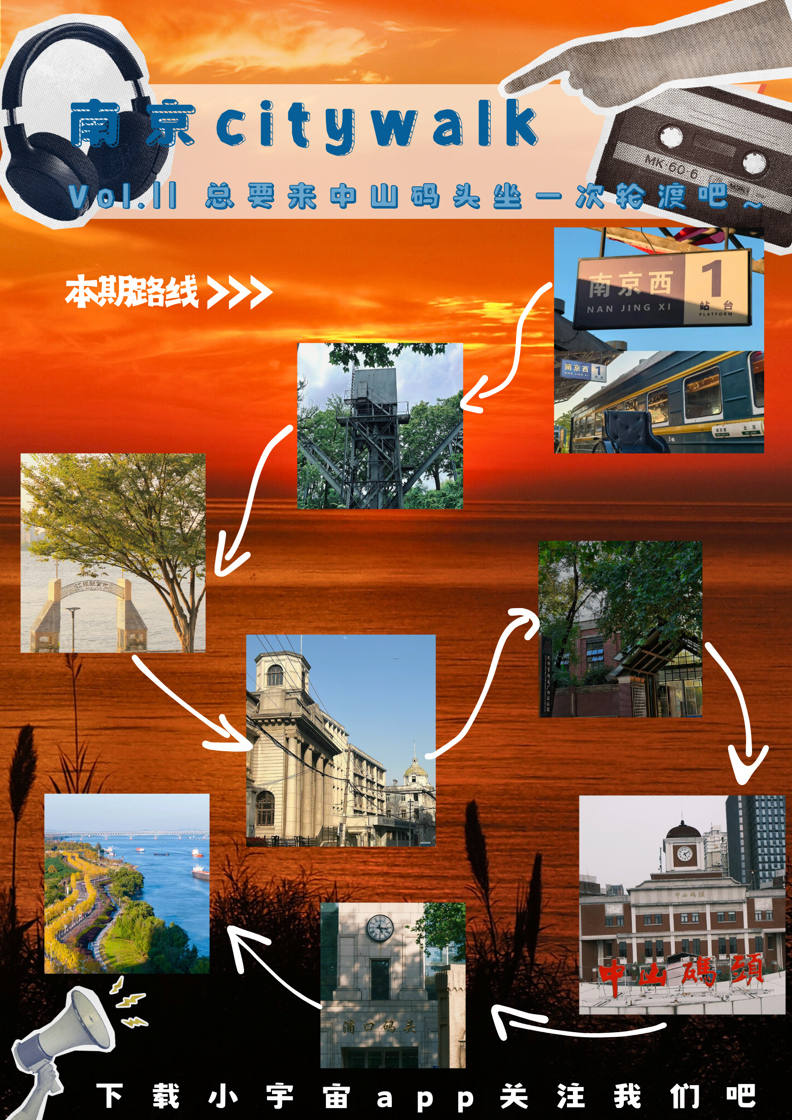 在本期节目中,我们给大家推荐的citywalk路线为:下关火车主题公园——铁路轮渡栈桥旧址——江边路——大马路民国风情街——民国首都电厂旧址公园——中山码头——浦口码头——扬子江生态公园~