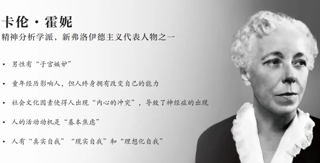 10:10 卡伦·霍妮驳斥弗洛伊德的慕男理论,受到打压;写出诸多精神分析及女权主义领域的重要论著
