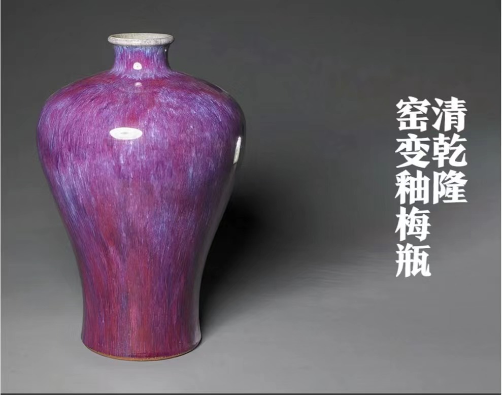 11:06印象深刻的展品之乾隆时期的窑变釉梅瓶、清代的芙蓉石梅花盆景