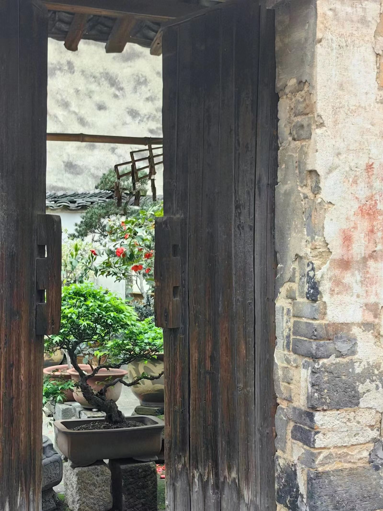 在古城漫步时,处处是相对而出的马头墙,高大却不逼仄。看见掩映门扉中的山茶,此处浓烈,山乡悠远,天地为家成为实感。