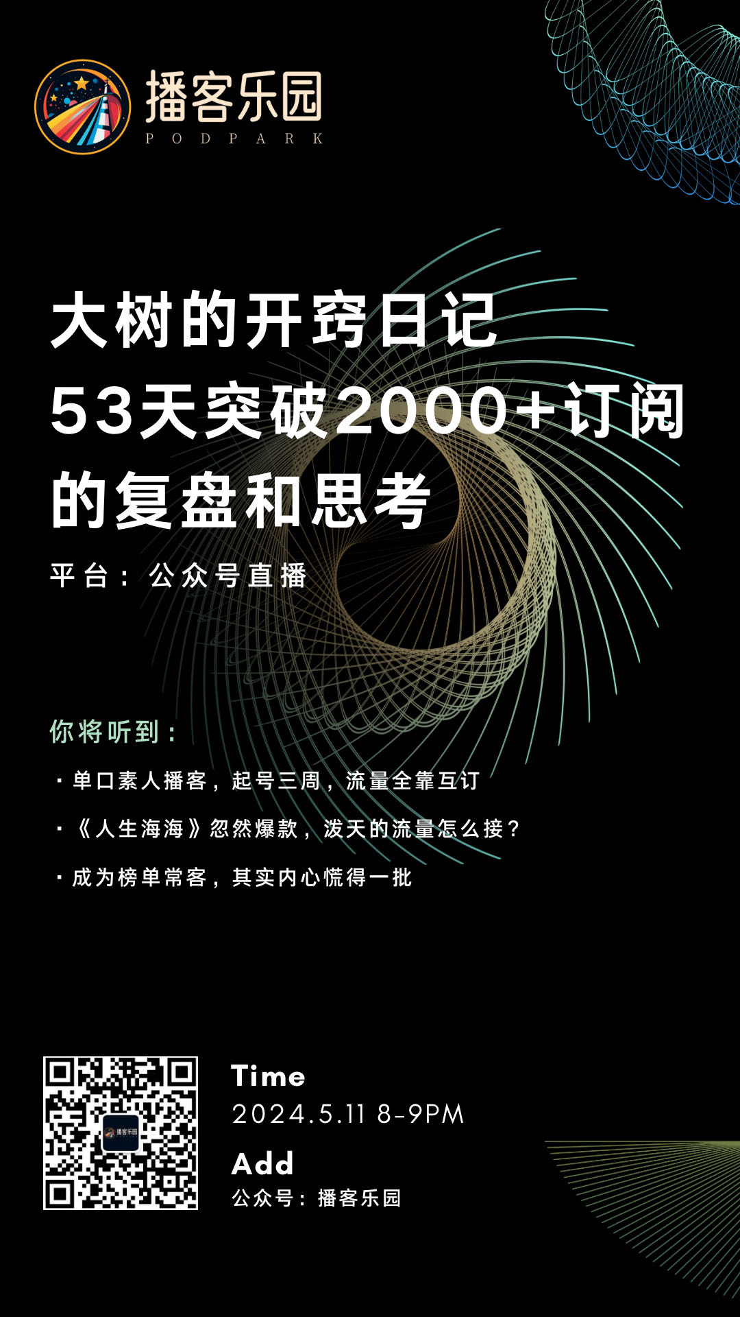 本节目由播客乐园制作发布本期节目时间线:02:35 多听同赛道播客,找到差异化卖点12:18 别害臊!用好朋友圈,私聊砍一刀14:30 公域引流,小红书注册马甲,播客推荐帖下留言17:20 小宇宙流量by自然日统计凌晨12点05发布最大化数据19:10 抓好黄金90天,努力上新星榜22:35 用心运营听友群,维护好原始股东23:37 Q&A更多消息请关注公众号:播客乐园