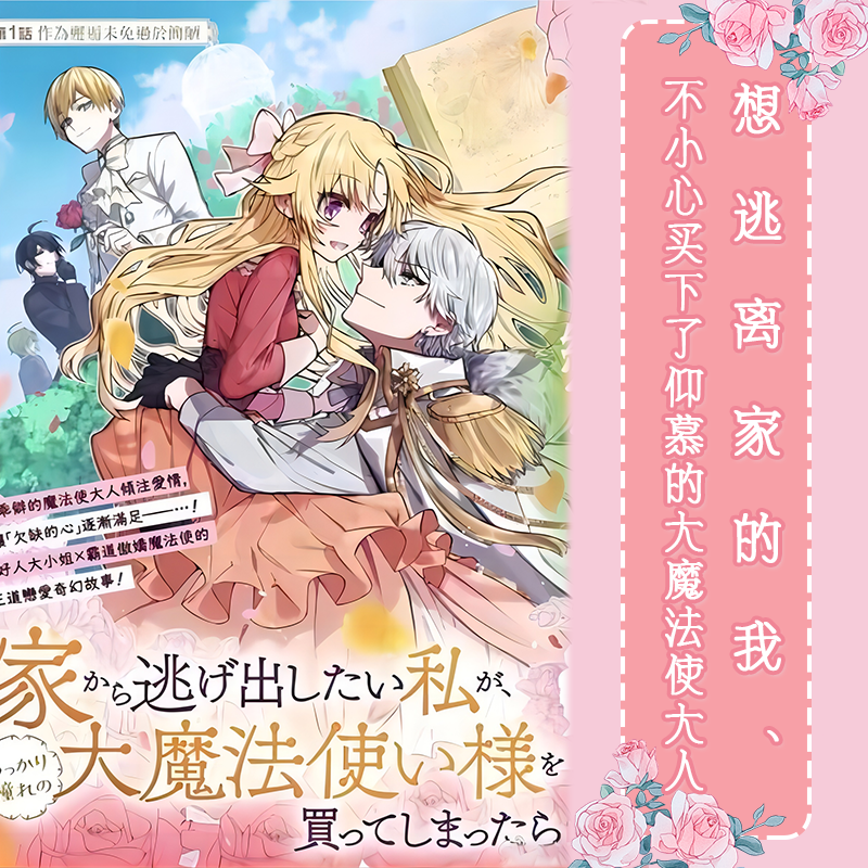 Hi,友友们,晚上好呀!今天笔者为小伙伴们推荐的漫画是《想逃离家的我、不小心买下了仰慕的大魔法使大人》,日文名是《家から逃げ出したい私が、うっかり憧れの大魔法使い様を買ってしまったら》,原作为琴子老师,漫画由鹰来タラ老师绘制。
